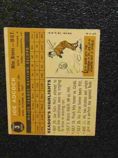 1960 Topps #3 Joe Adcock - G/VG - BV $25