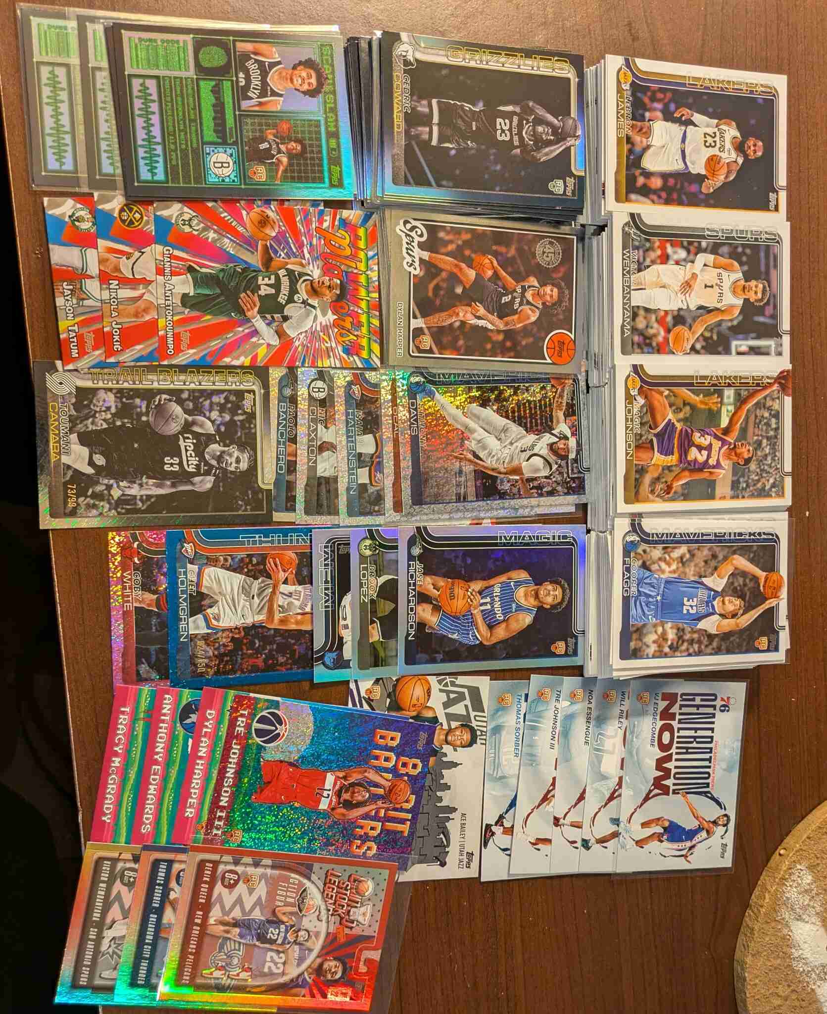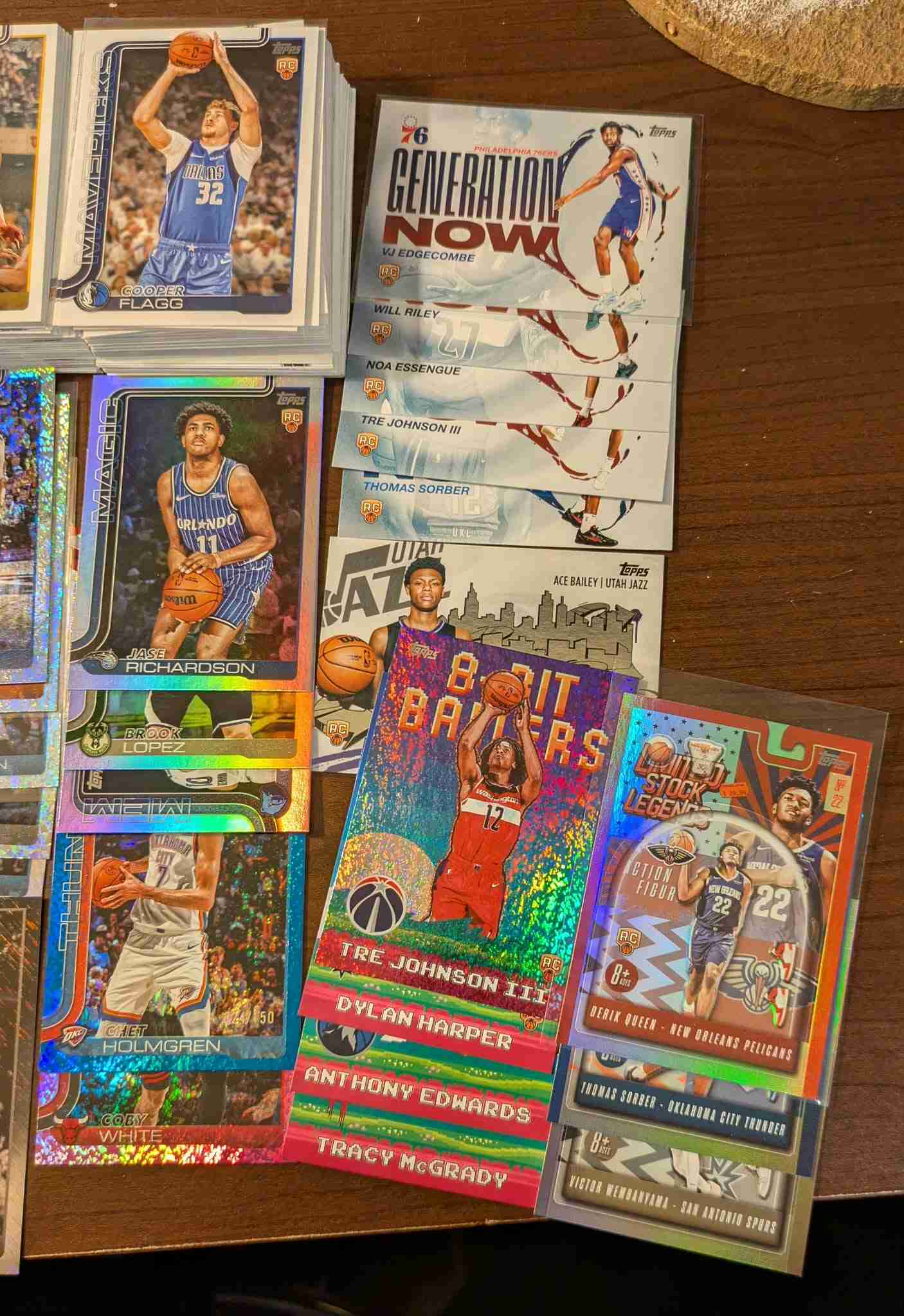Nice Lot of the new Topps Basketball product that just came out!!! 273 Card lot includes: 170 Base vets, 33 Base rookies (Inc. Cooper Flagg, Ace Bailey) 27 Blackout SP Variations (Incl. 9 Rcs and one /99 variation), 5 Generation Now rookie inserts 4 8 Bit Baller inserts (incl 1 speckle RC and 1 other RC), 3 Power Player inserts, 12 45th Anniversary inserts (incl. 6 Rcs), 6 Scan & Slam inserts (incl. 3 Rcs), 3 Limited Stock Legends insers (incl. 2 Rcs),