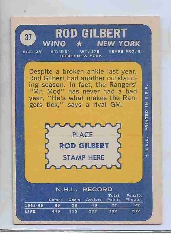 1969-70 Topps #37 ~ Rod Gilbert New York Rangers HOF
