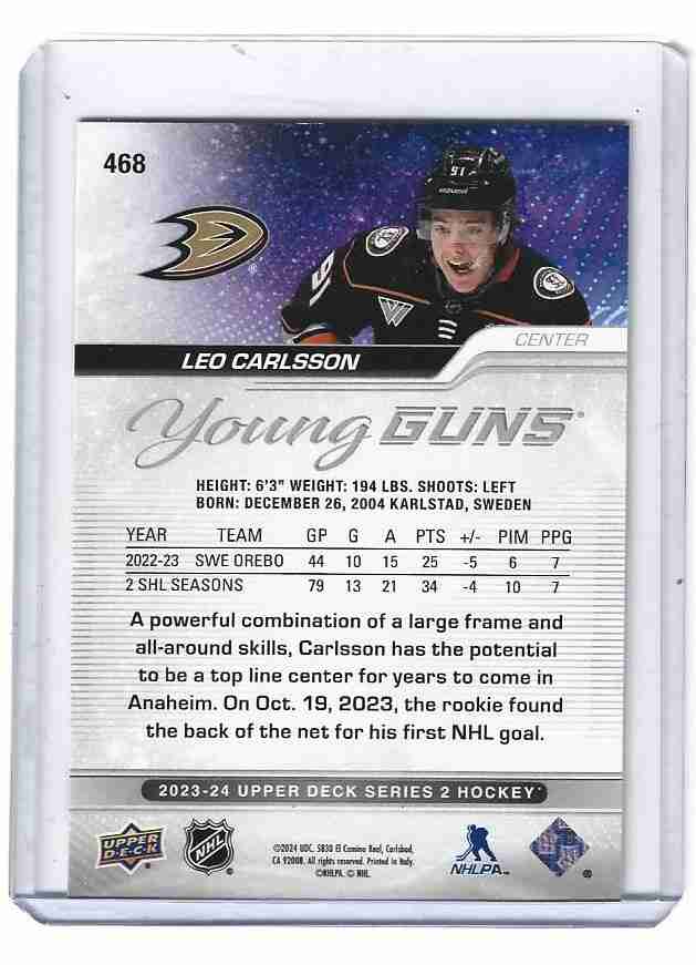 2023/24 UD 2 #468 LEO CARLSSON YOUNG GUNS