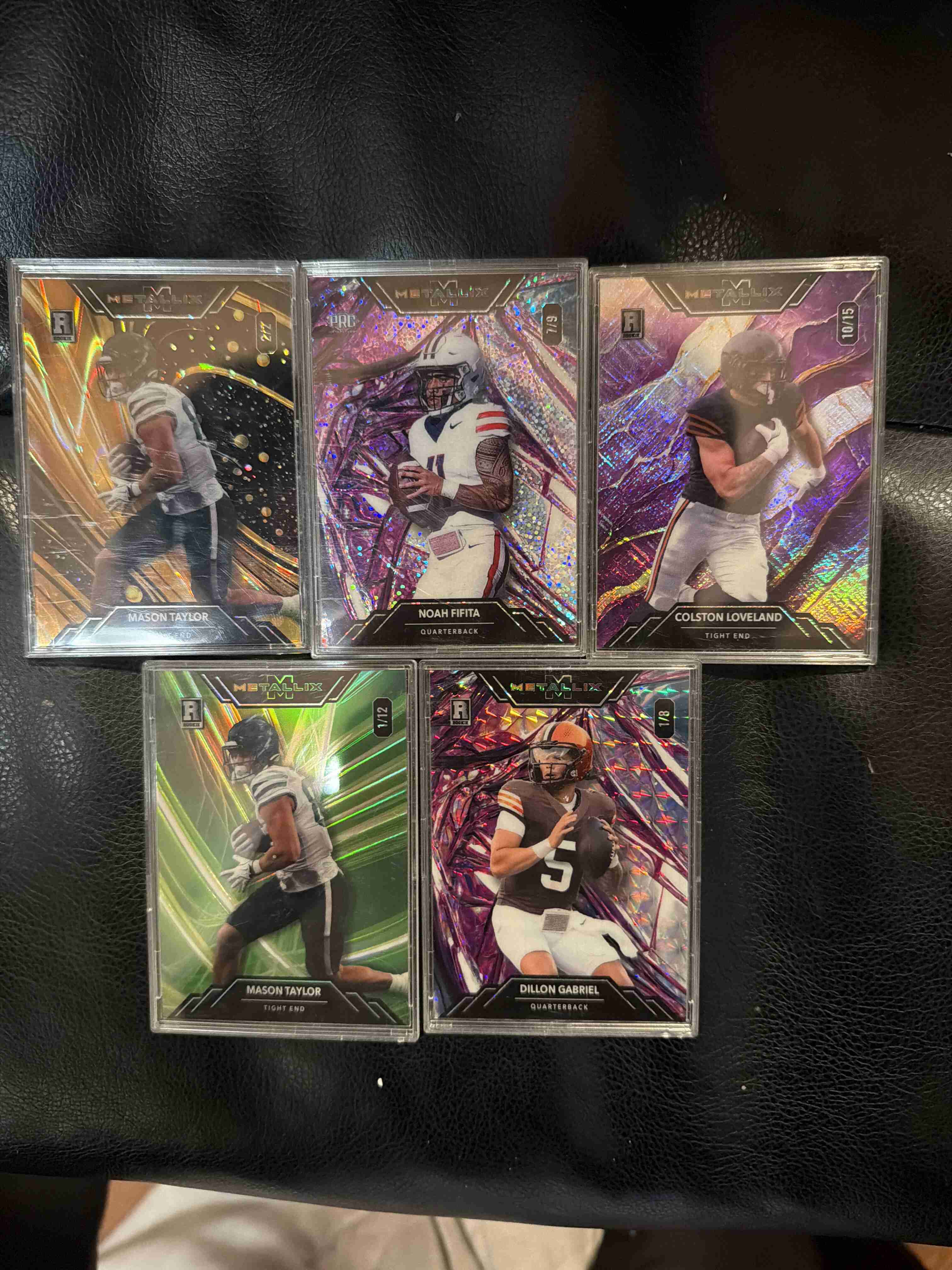 5x 2025 Wild Card Metallix numbered cards with 4 being NFL rookies and 1 a college football player with a good amount of hype after a solid season. All the cards are centered perfectly!