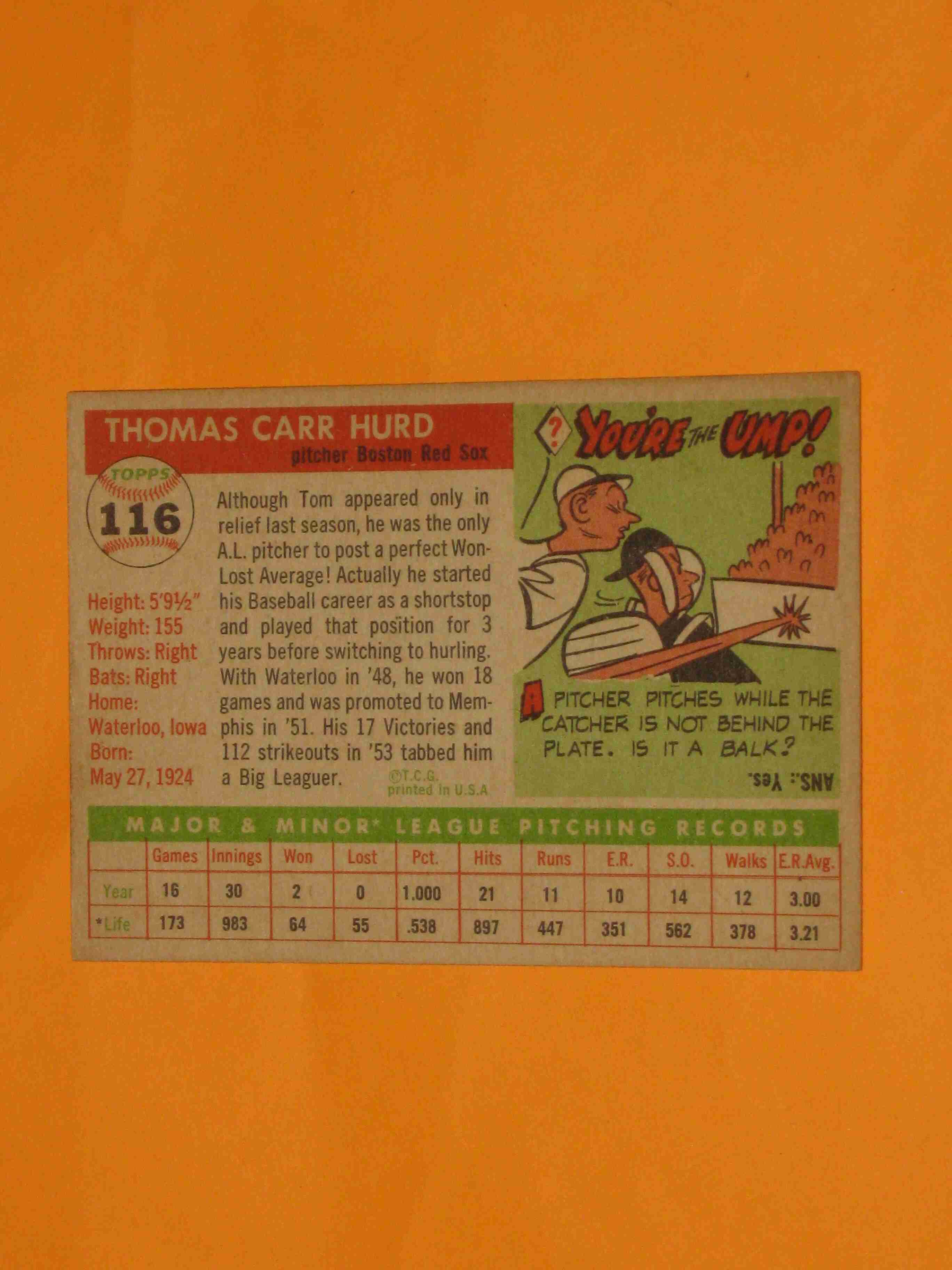 1955 Topps Tom Hurd #116 Boston Red Sox NICE