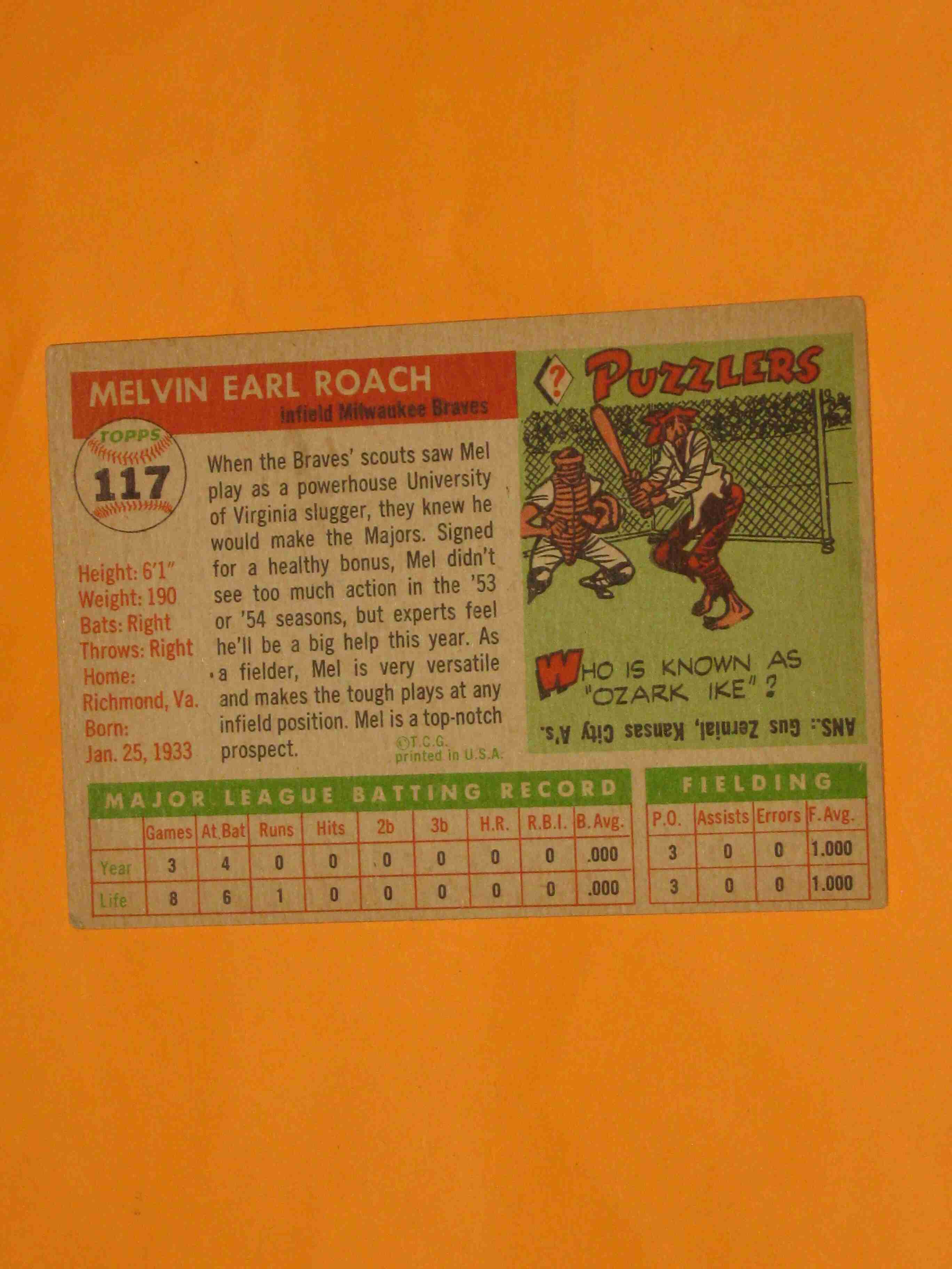 1955 Topps Mel Roach #117Milwauke Braves NICE