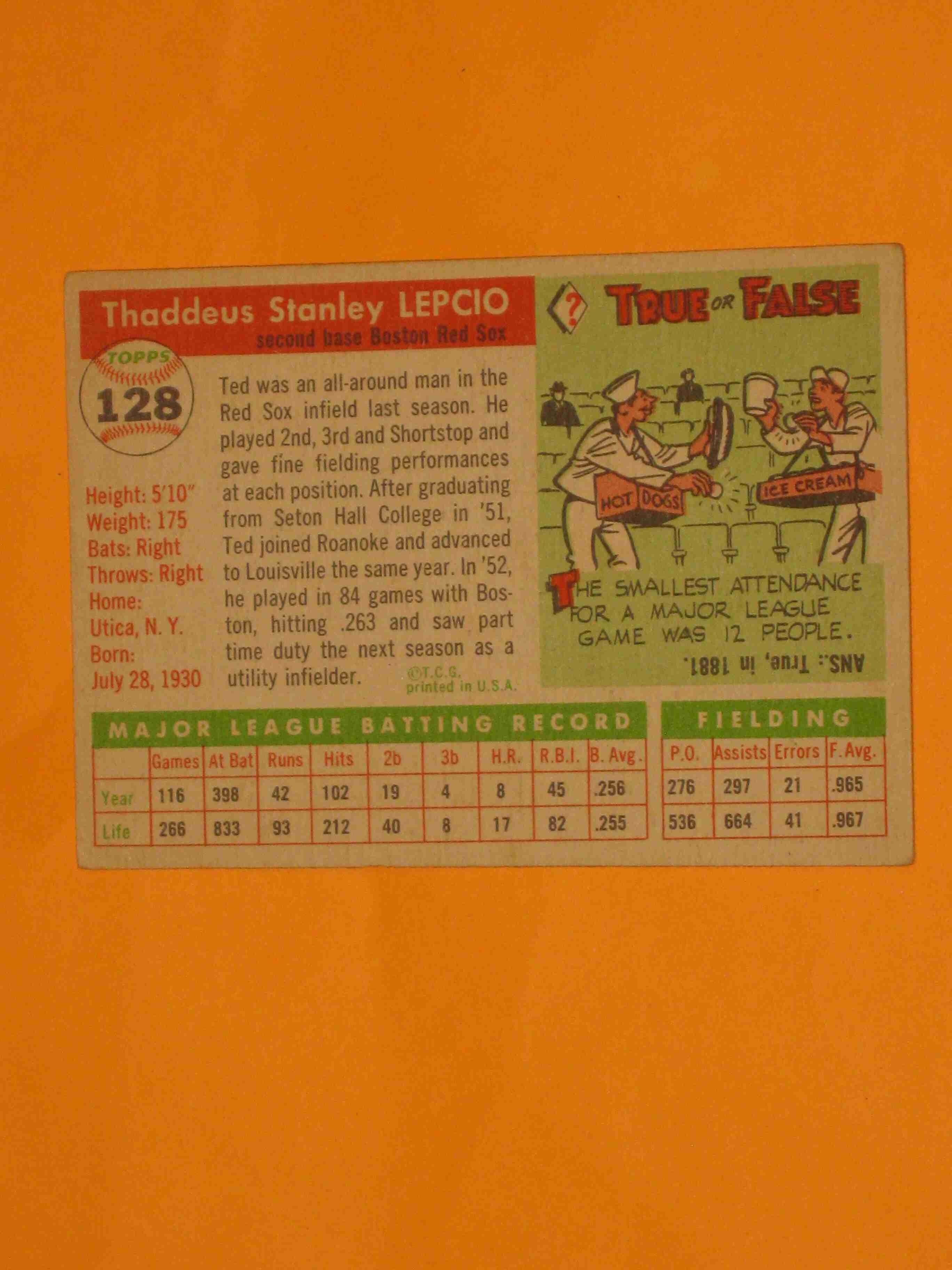 1955 Topps Ted Lepcio #128 Boston Red Sox NICE