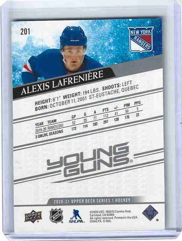 2020/21 UD 1 #201 ALEXIS LAFRENIERE YOUNG GUNS