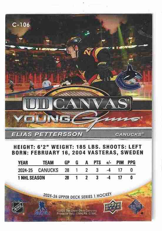 2025/26 UD 1 C106 ELIAS PETTERSSON YOUNG GUNS CANVAS