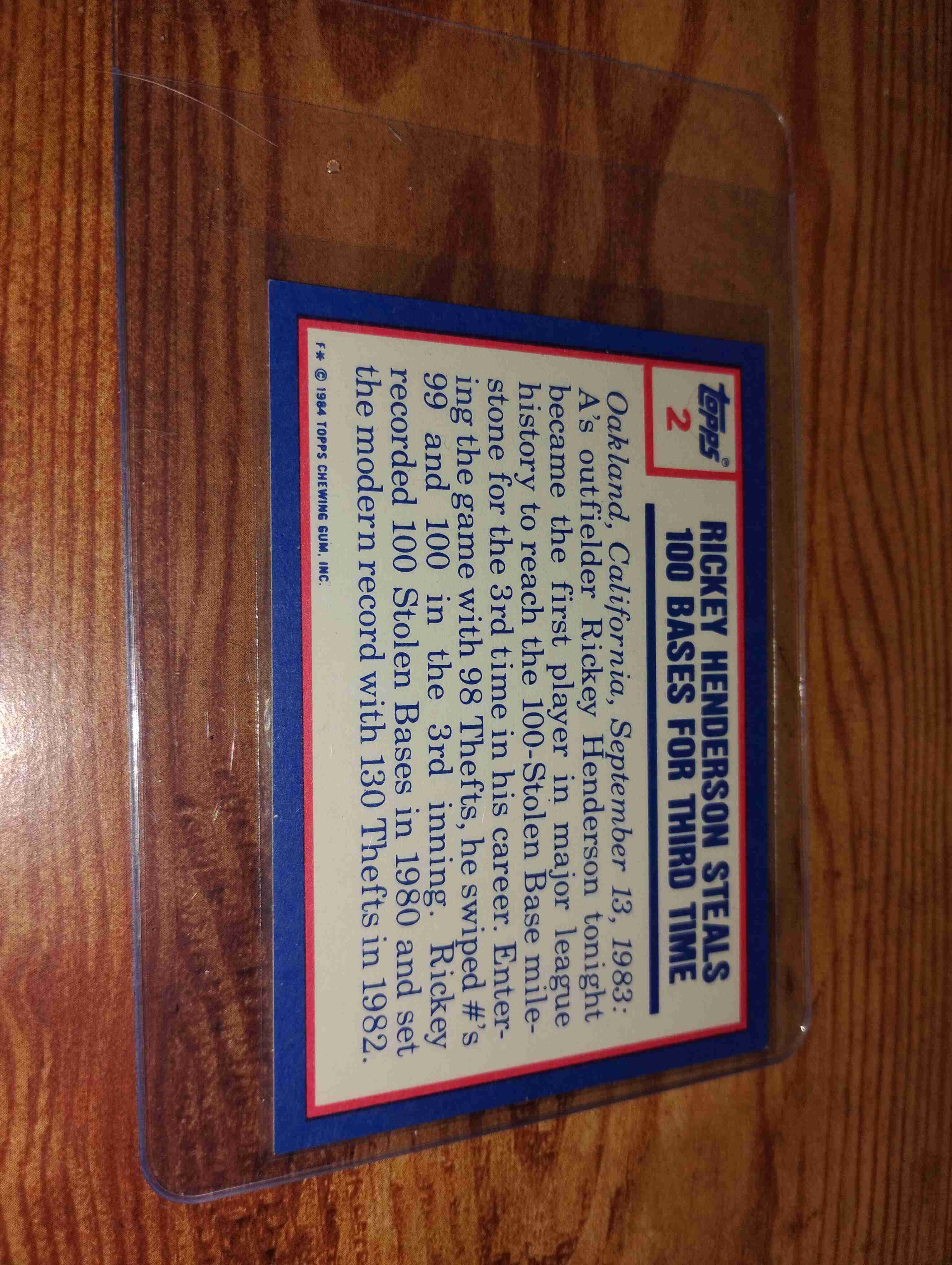 RICKEY HENDERSON 1984 TOPPS TIFFANY HIGHLIGHT CARD #2