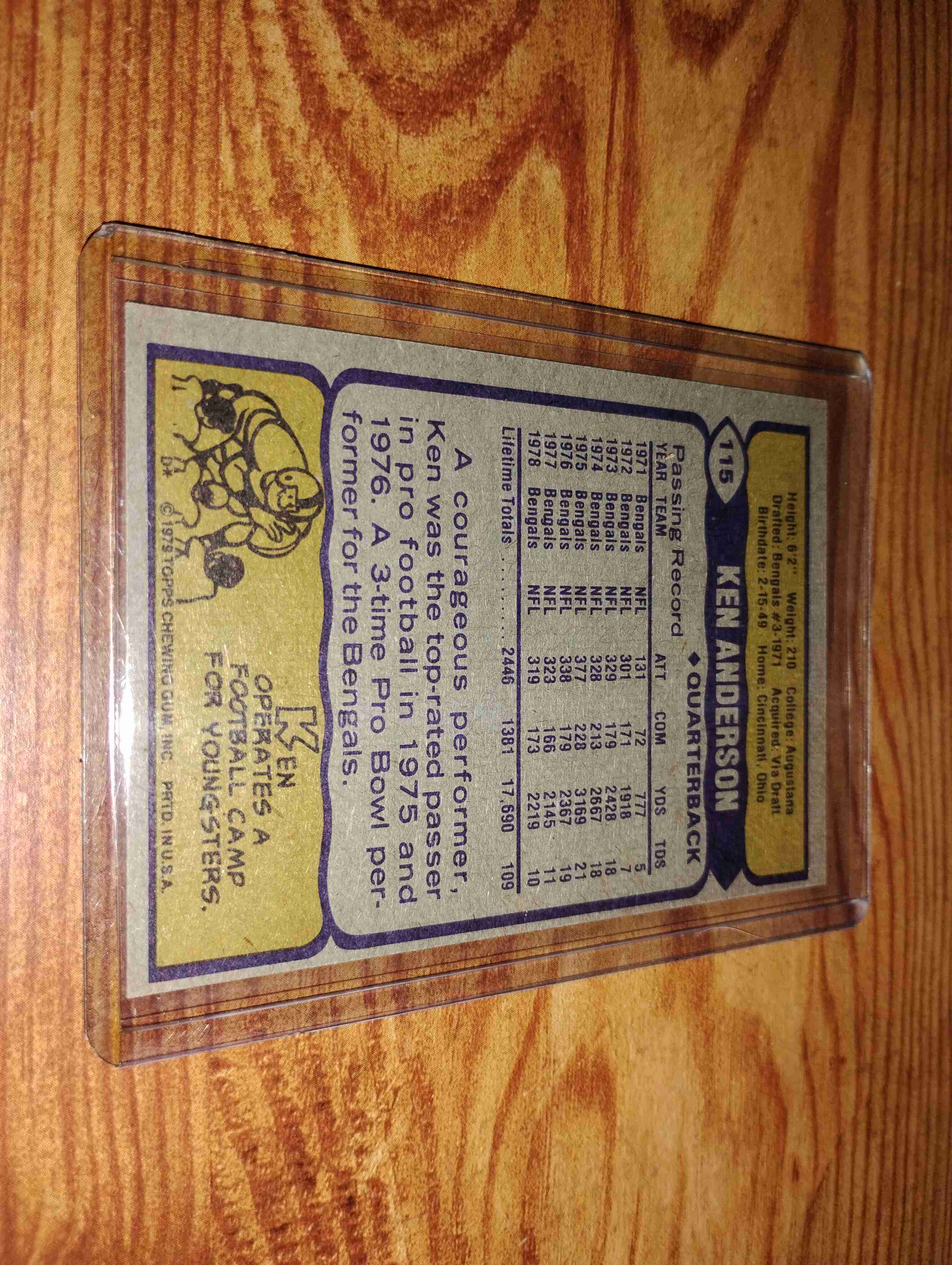 1979 TOPPS KEN ANDERSON CARD #115