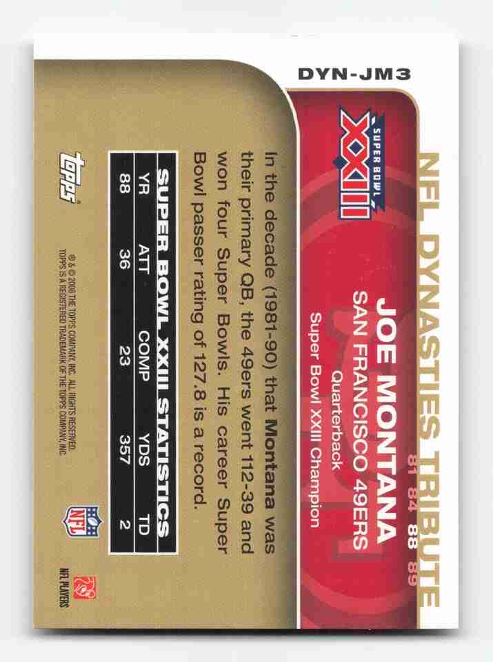 2008 Topps #DYN-JM3 Joe Montana NFL Dynasties Tribute