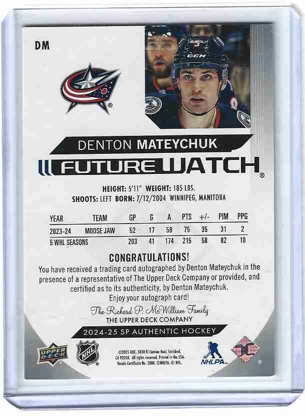 2024/25 SP AUTHENTIC DENTON MATEYCHUK FUTURE WATCH AUTO