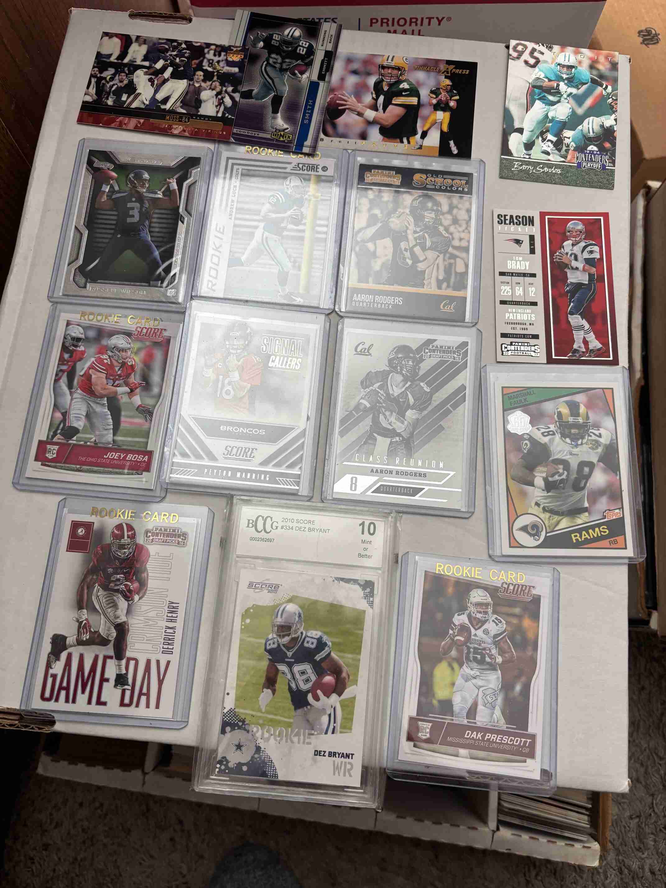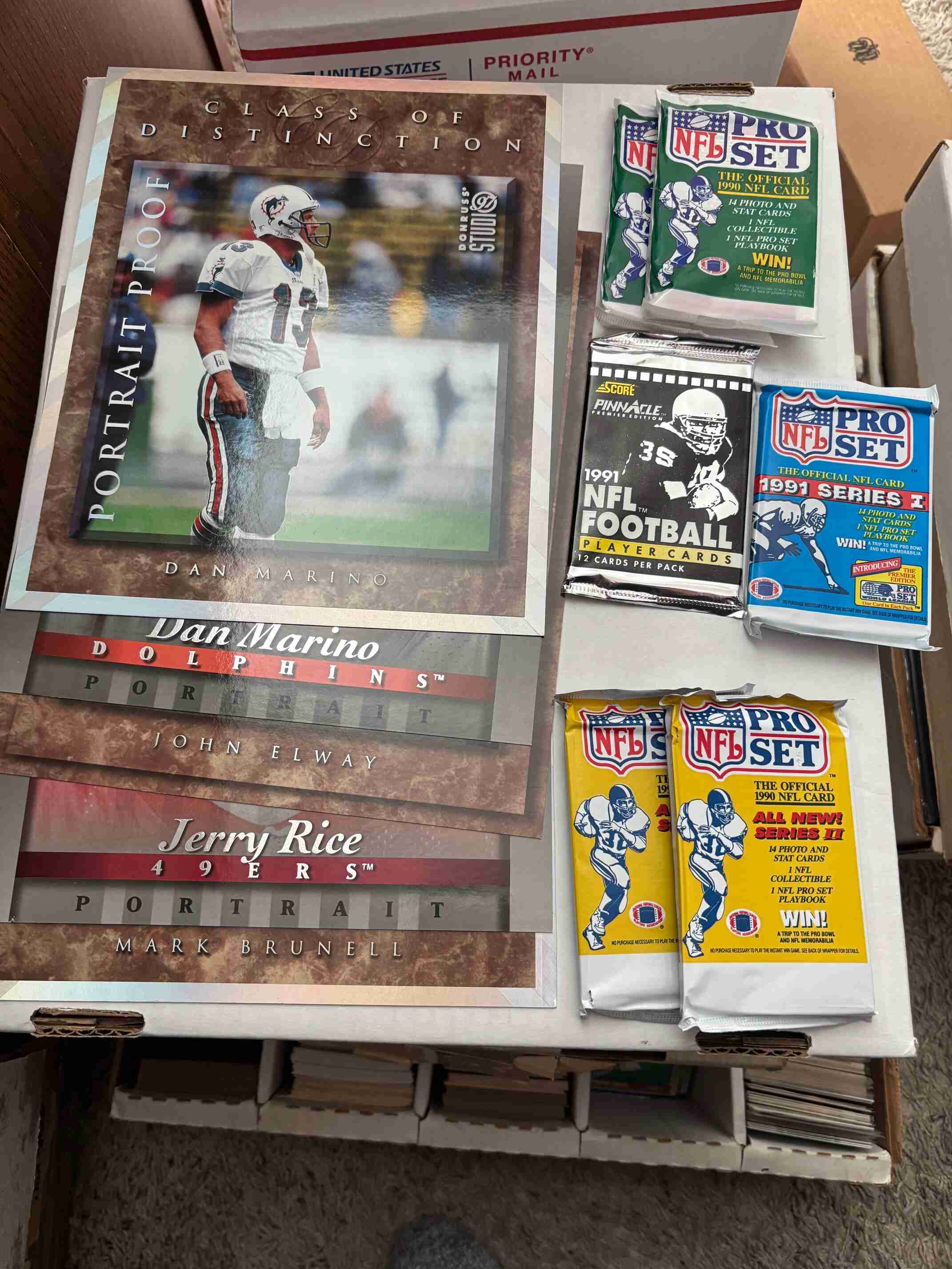 Huge clearance collection of 2500 FB cards featuring BCC Graded 10 Dez Bryant card, rare portrait cards including a Dan Marino Press Proof, and loaded with high value vintage, Rookies, Stars and unopened packs, all in great condition. You will receive everything shown in the photos and more. I am having a complete clearance of my 2,000,000 card collection, so please check out my other auctions for more great deals.