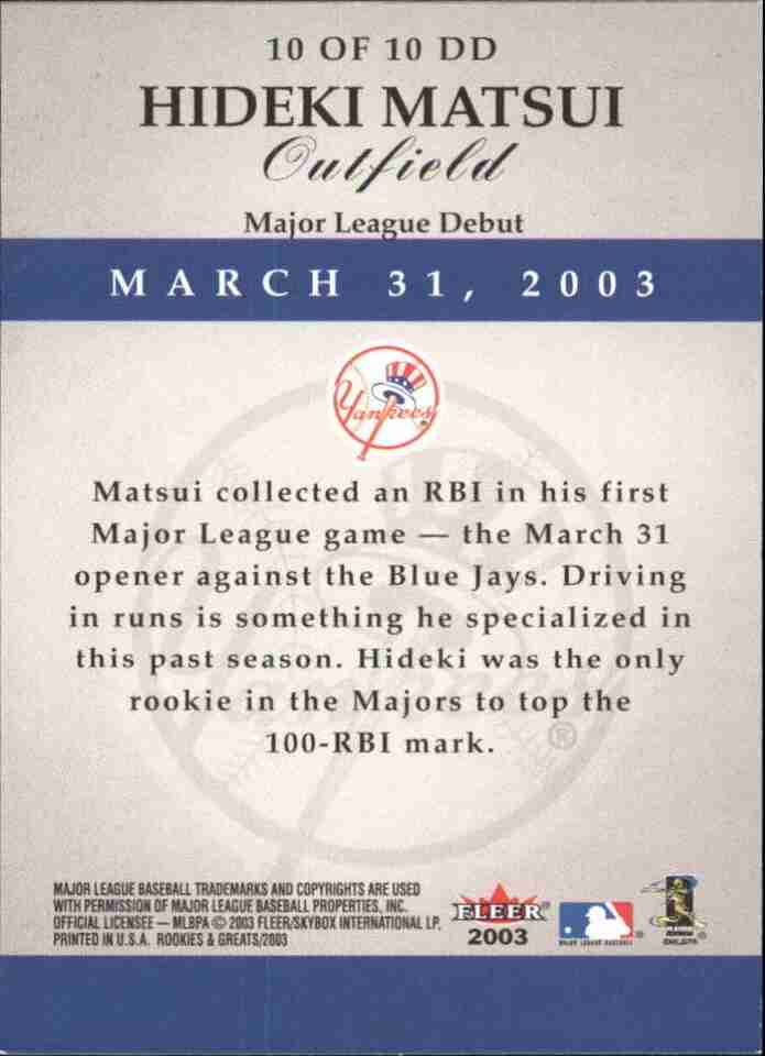 2003 Fleer Rookies and Greats Dynamic Debuts #10 Hideki Matsui