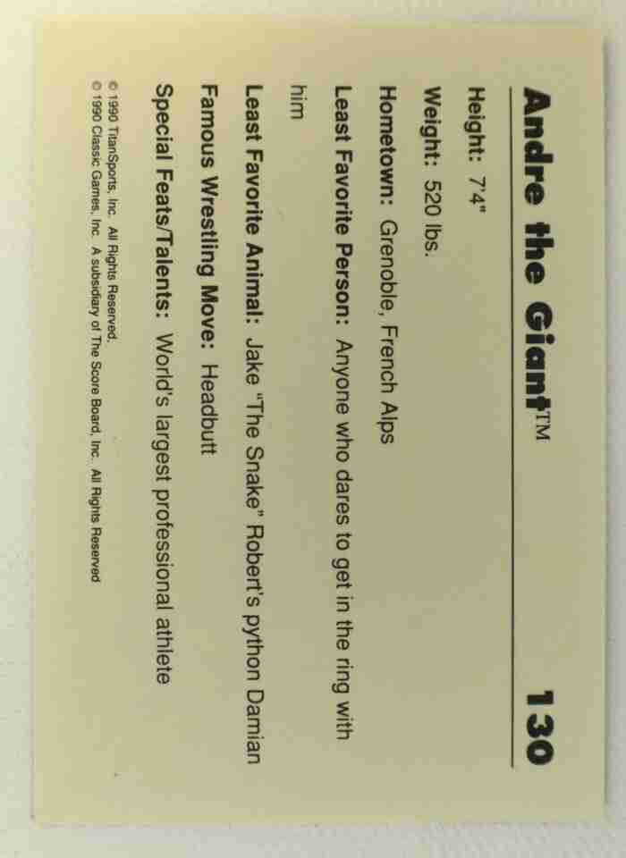 ANDRE THE GIANT #130 CLASSIC WWF TRADING CARD NM, 1990