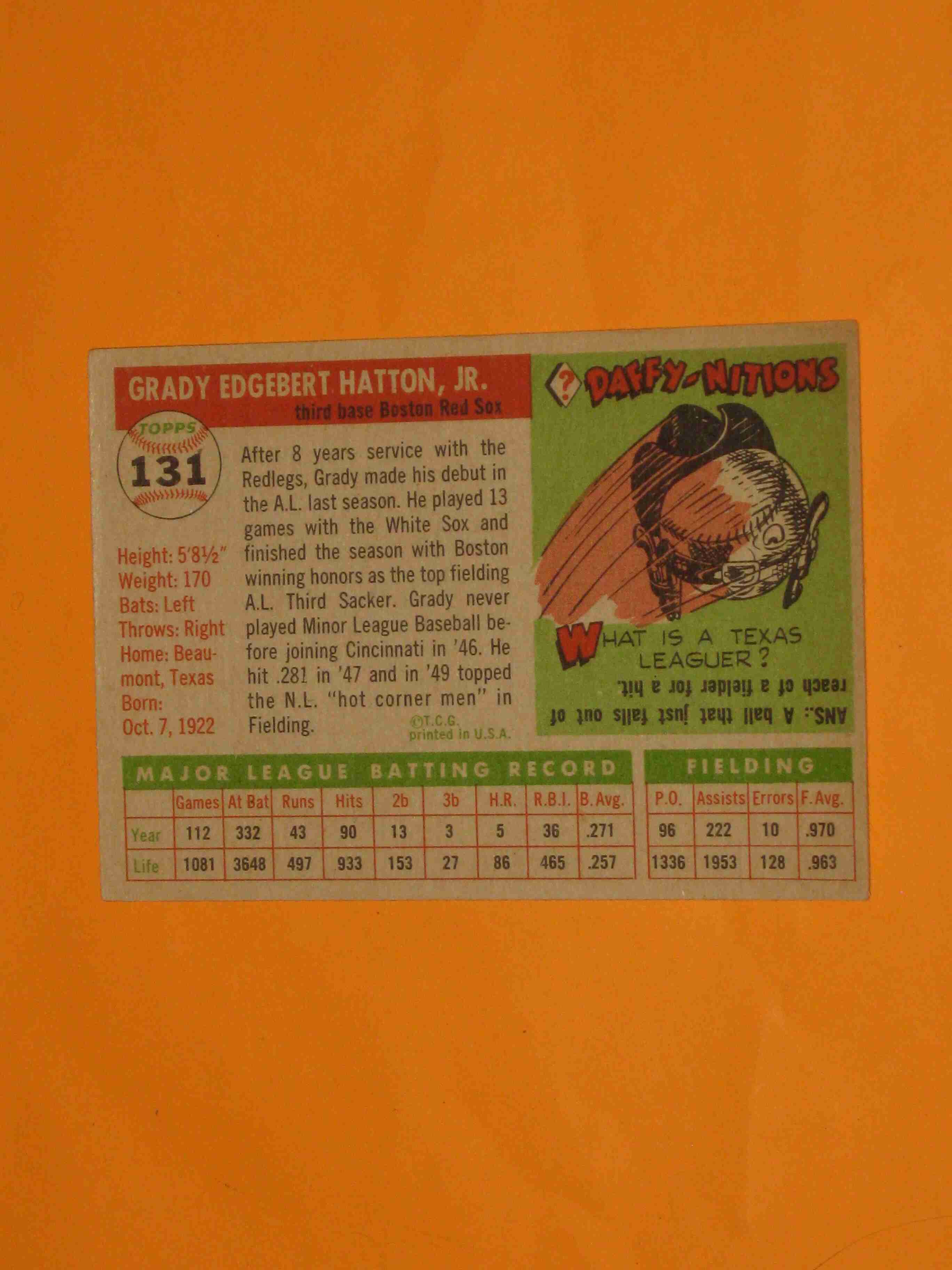 1955 Topps Grady Hatton #131 Boston Red Sox