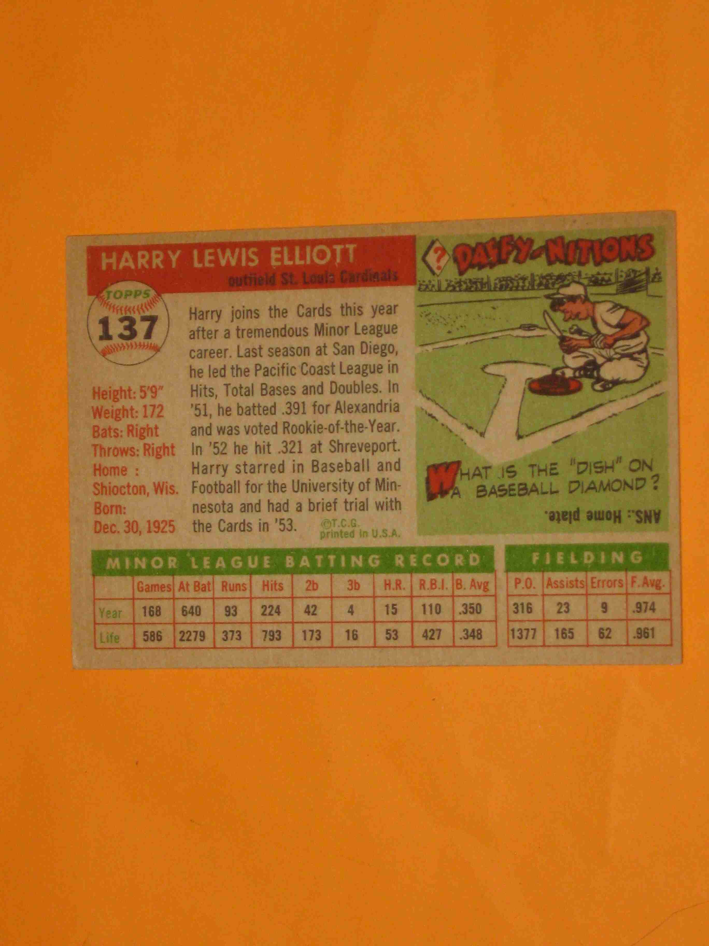 1955 Topps Harry Elliott #137 St Louis Cardinals NICE