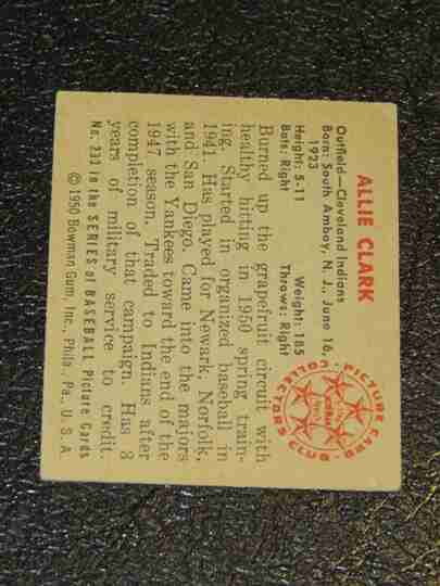 1950 Bowman #233 Allie Clark - VG/VG+ - BV $15