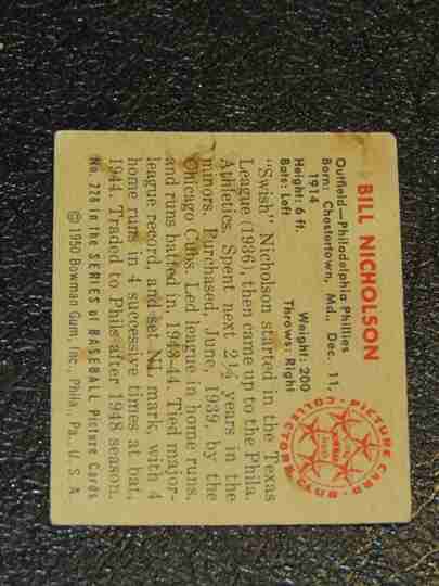 1950 Bowman #228 Bill Nicholson- F/G - BV $30