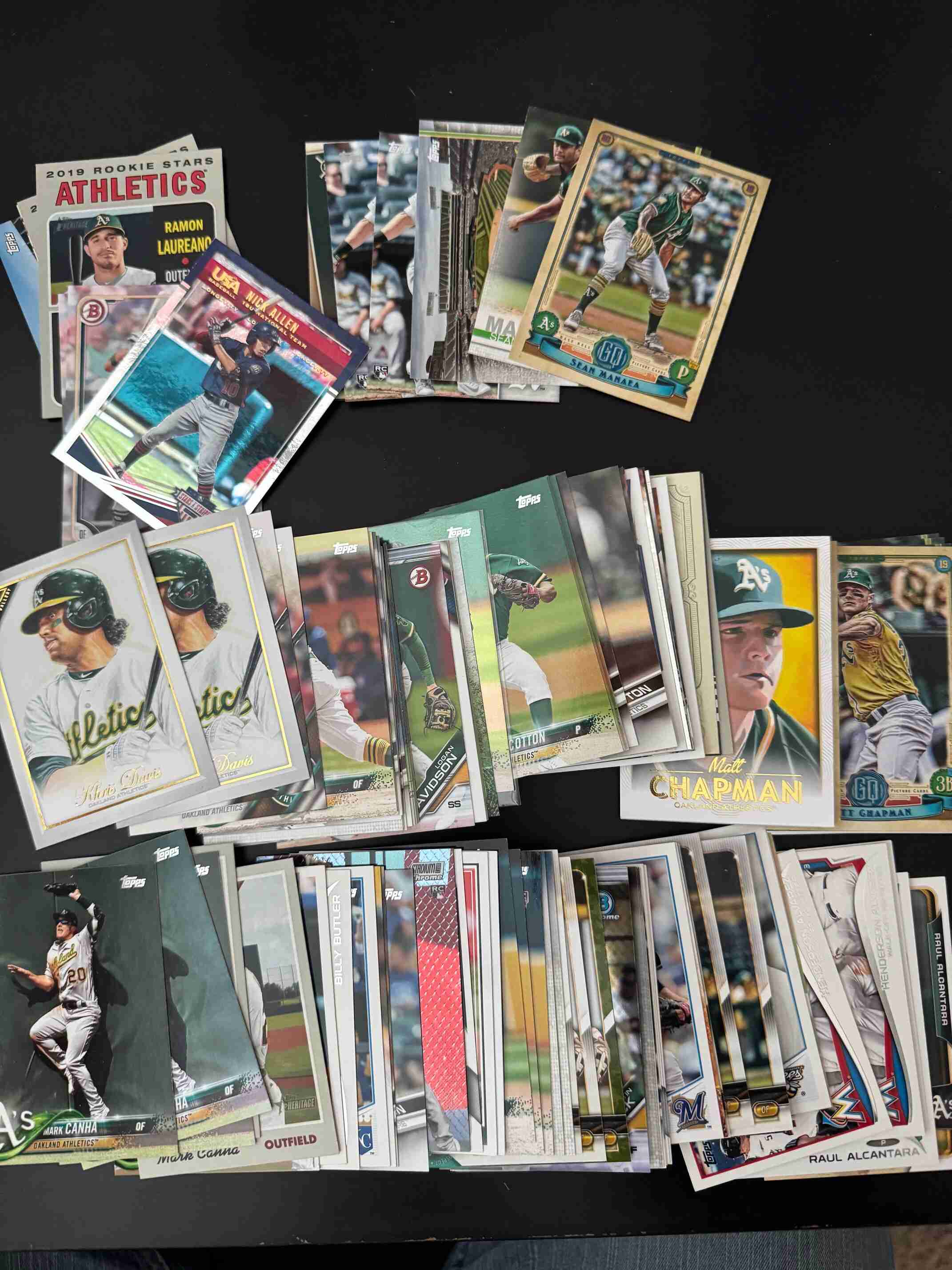 Examples of players included in the lot are: Sean Manea, Billy Butler, MAtt Chapman, Khris Davis, Sean Doolittle, Ryan Madson, Daniel Megeden, Matt Olson, Fernando Rodney, and MORE.