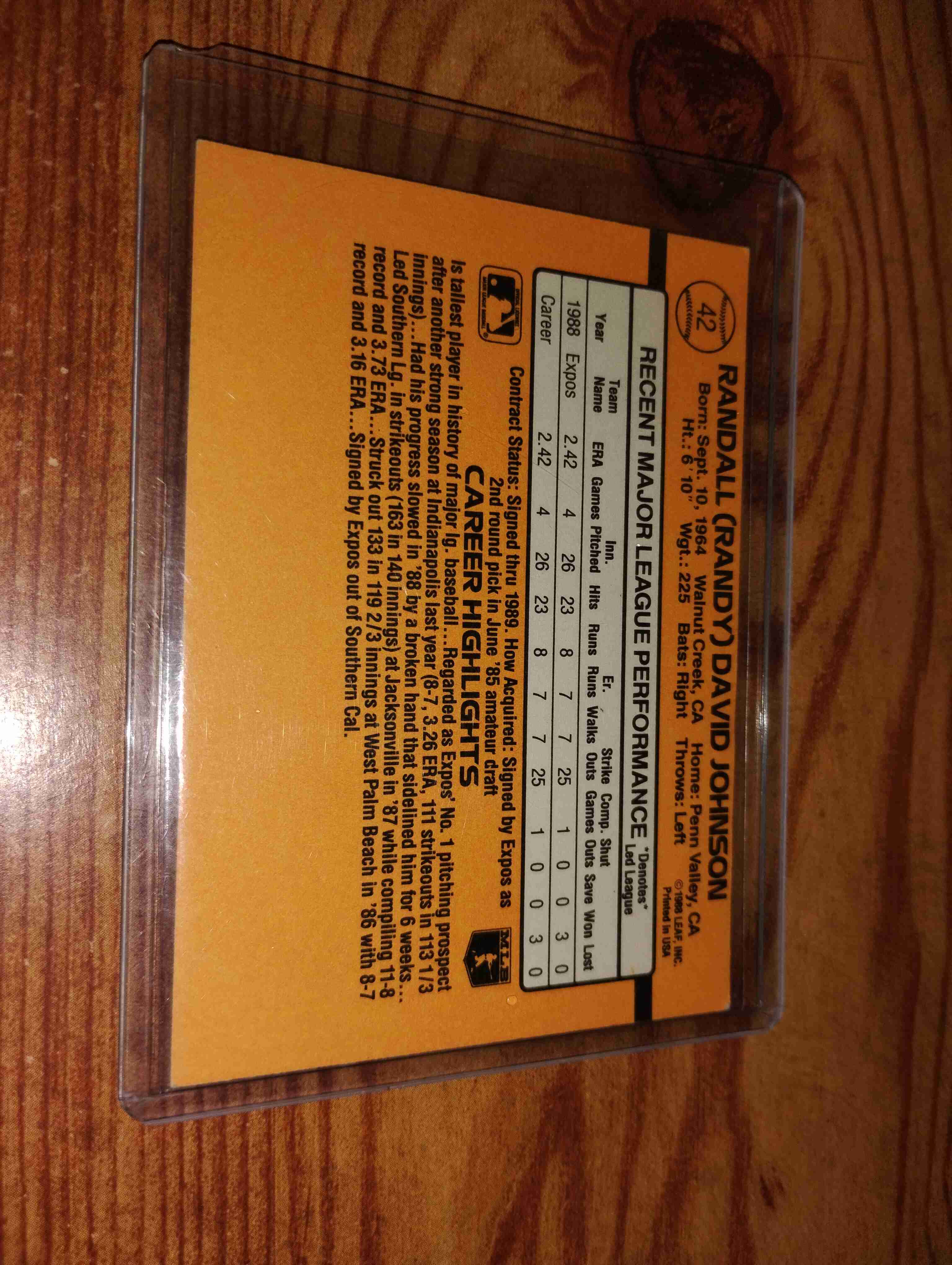 RANDY JOHNSON 1989 DONRUSS RATED ROOKIE CARD #42