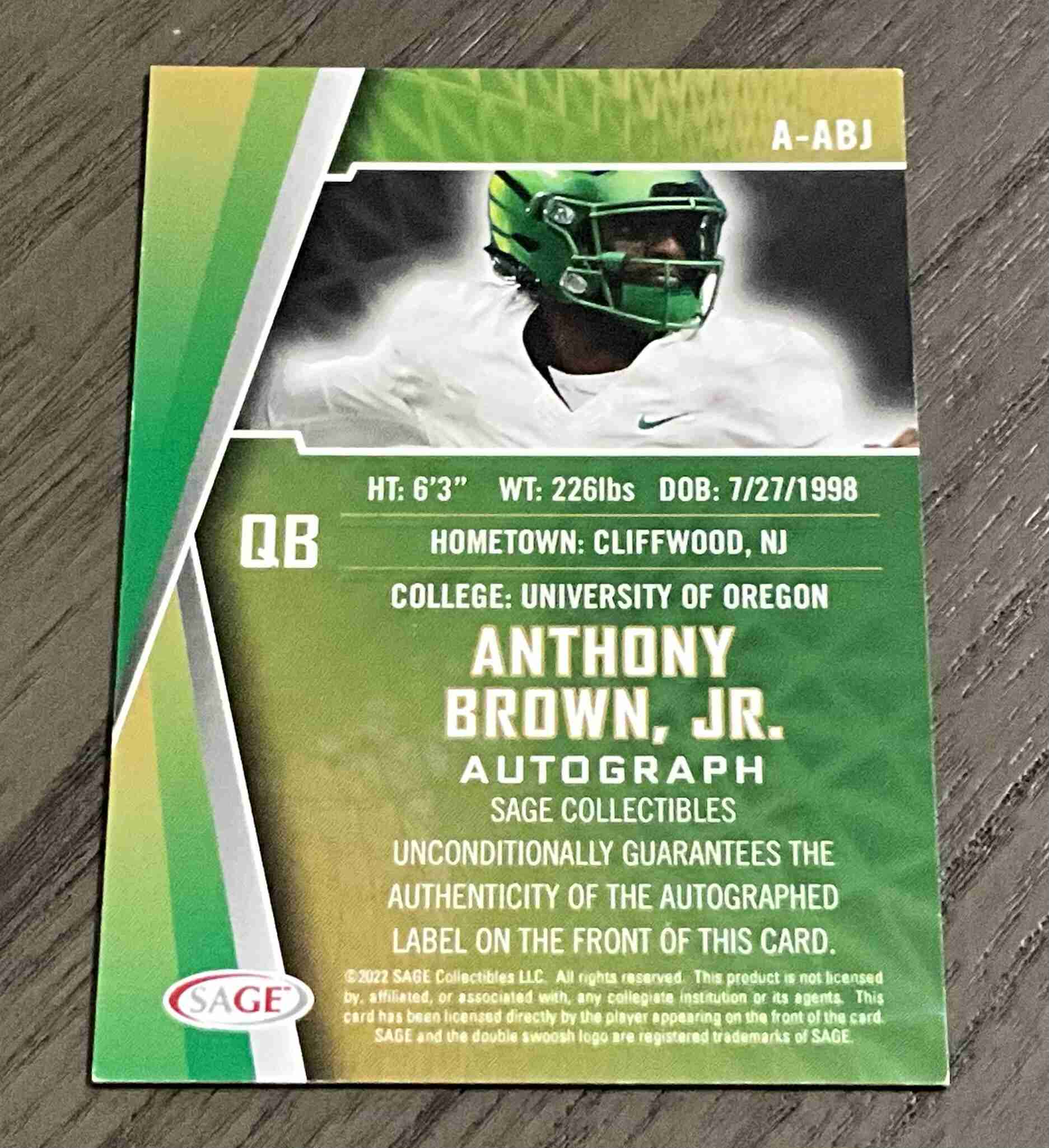 Anthony Brown Jr Rookie Autograph 2022 Sage Oregon