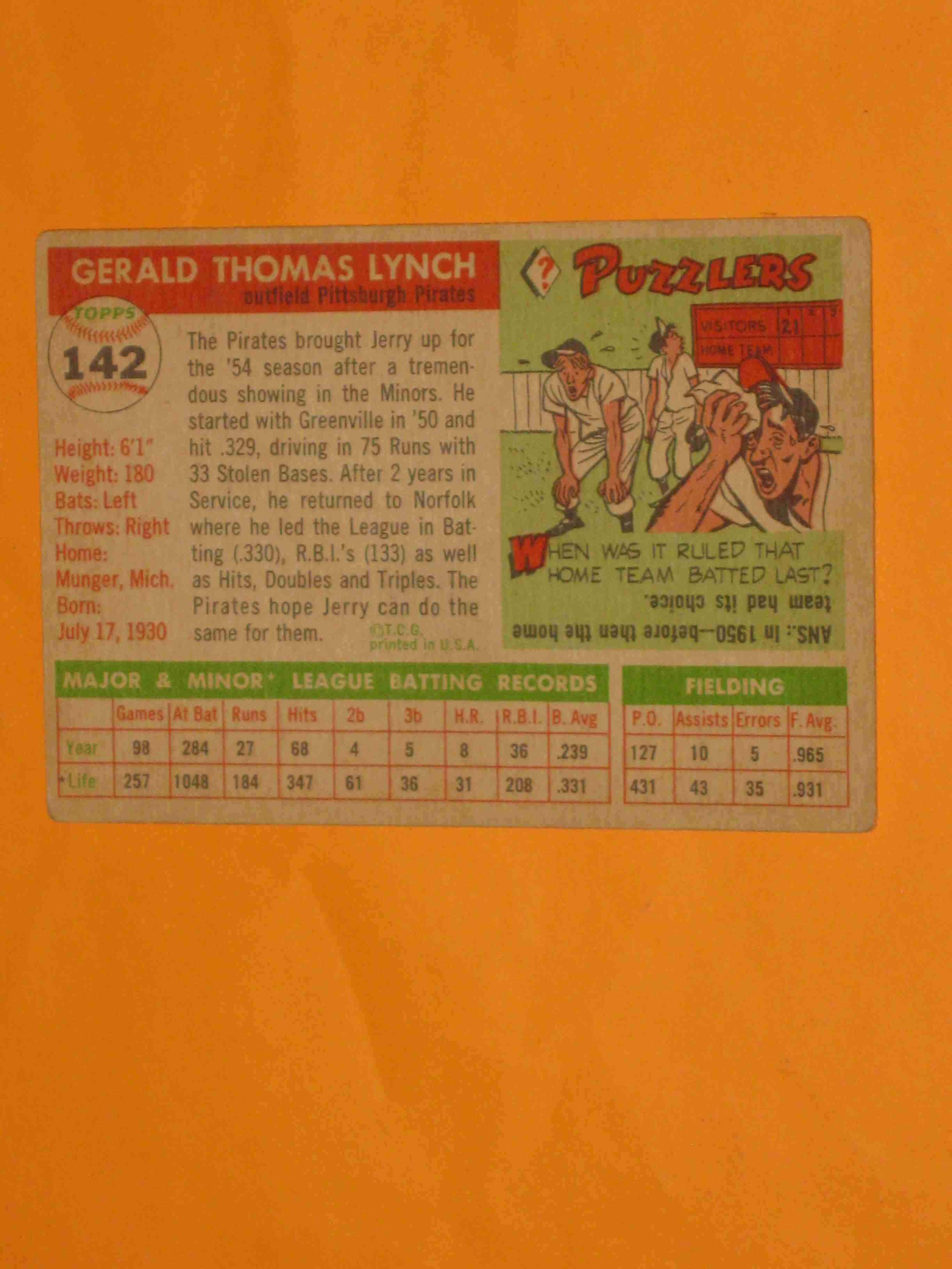 1955 Topps Jerry Lynch #142 Pittsburgh Pirates