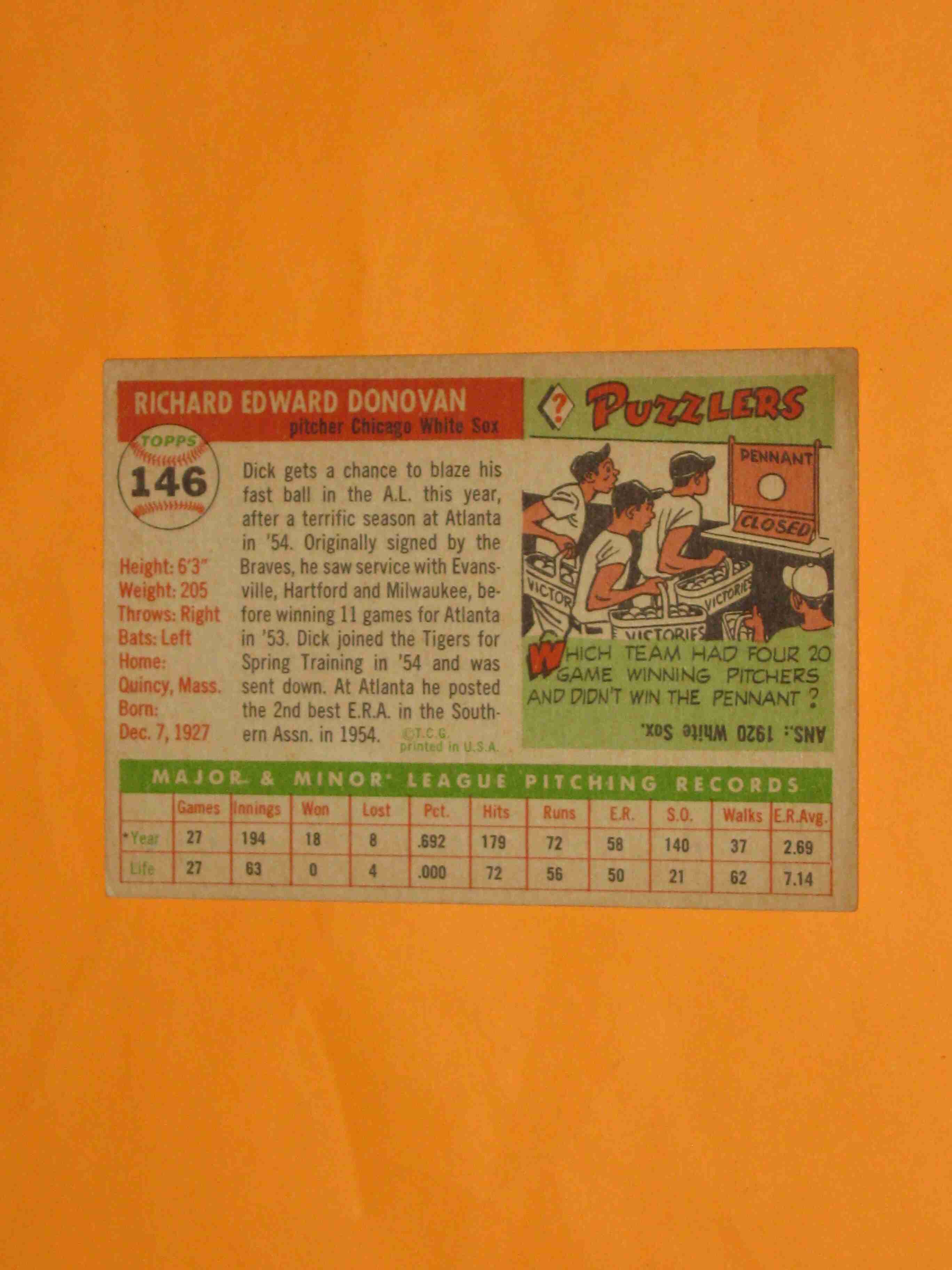 1955 Topps Dick Donovan #146 Chicago White Sox NICE