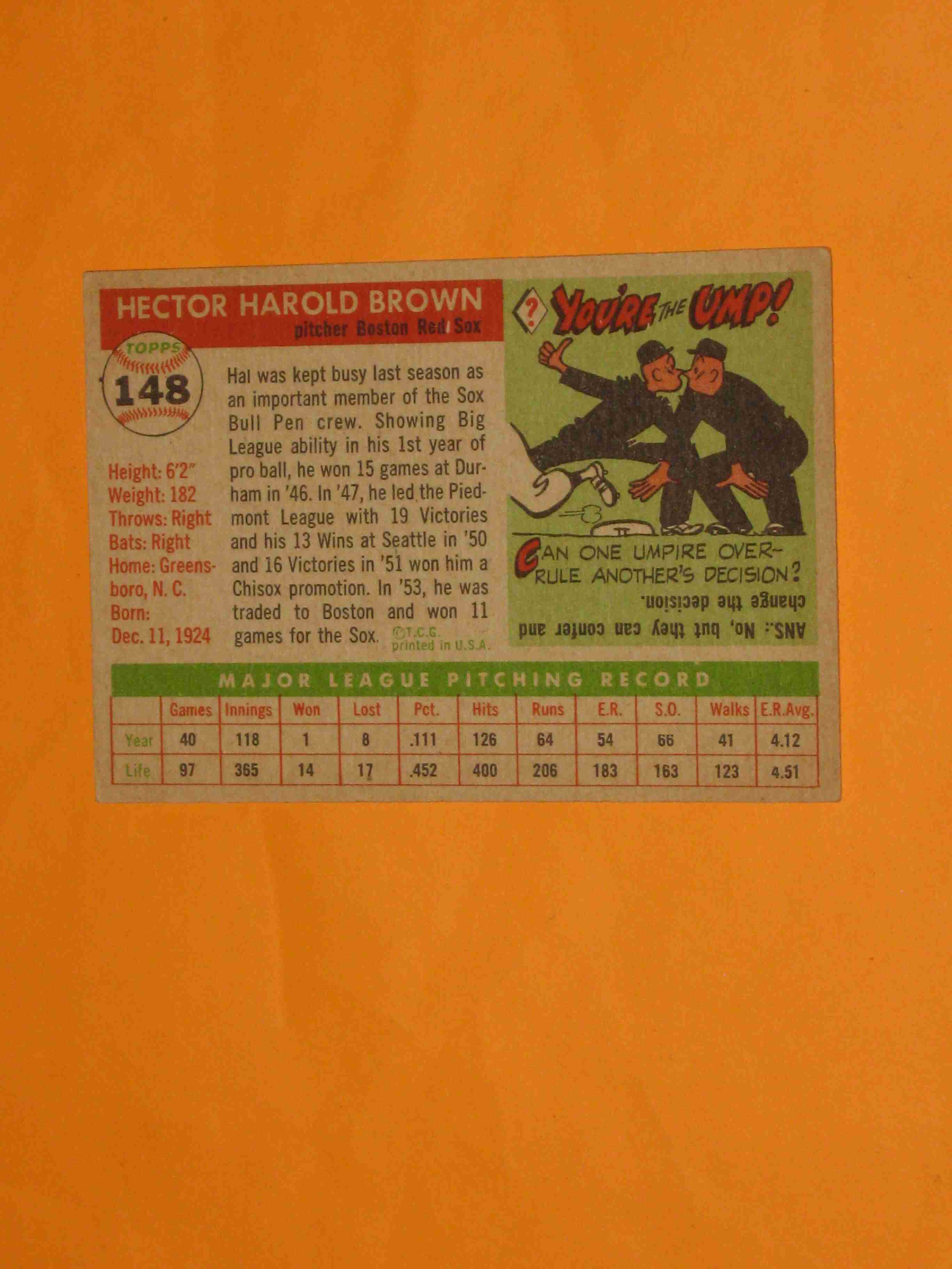 1955 Topps Hal Brown #148 Boston Red Sox NICE
