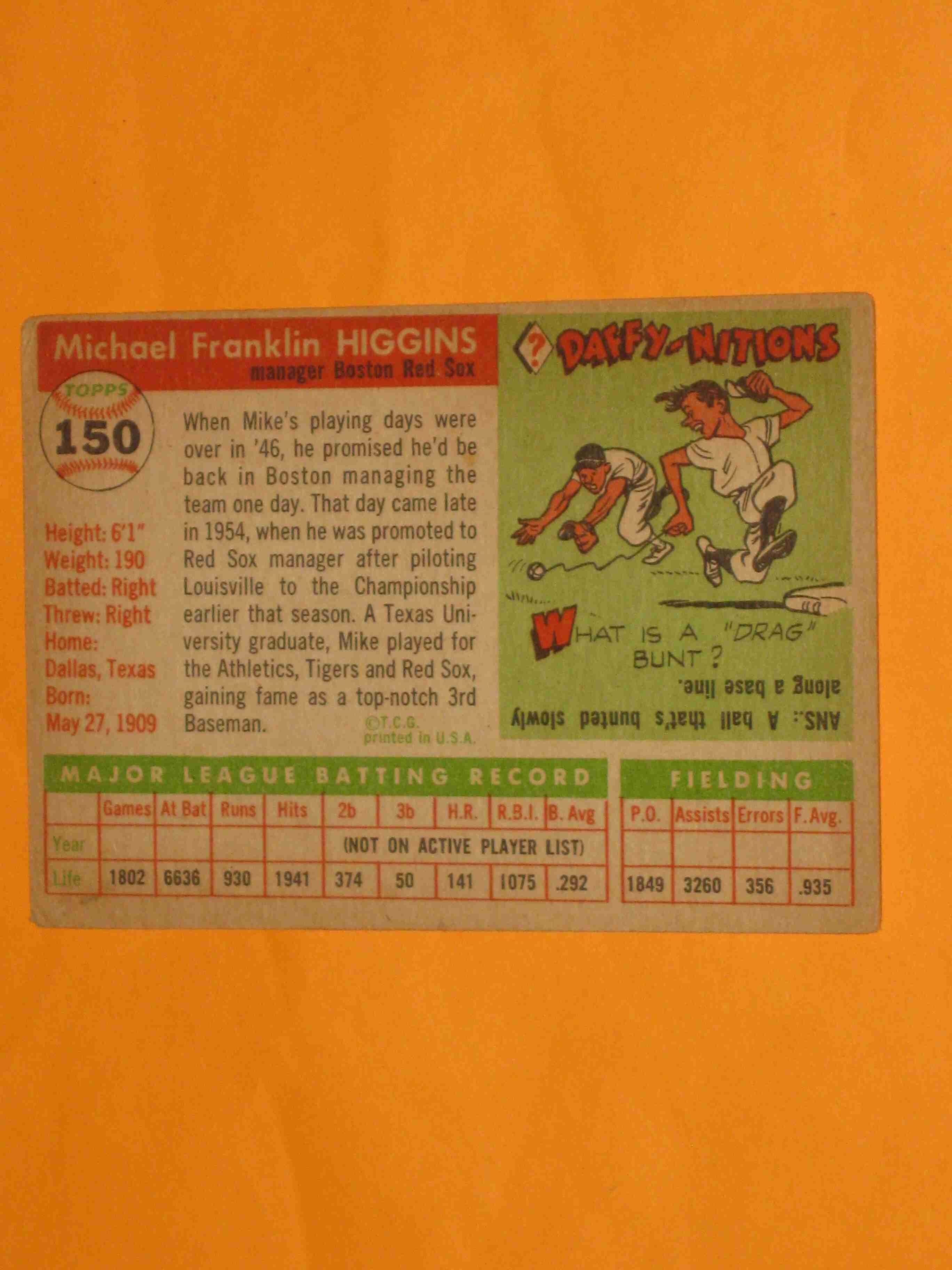 1955 Topps Mike Higgins #150 Boston Red Sox