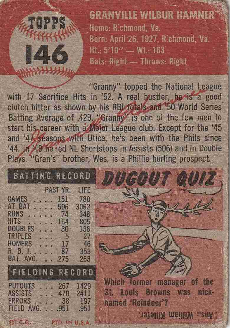 2-1953 Topps Philadelphia Phillies #'s 59 146 (low grade)