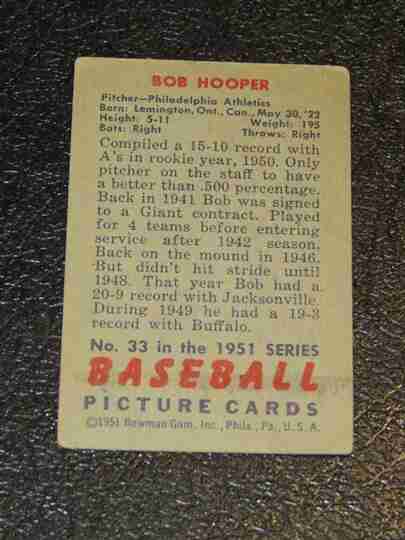 1951 Bowman #33 Bob Hooper RC - G/VG- BV $20