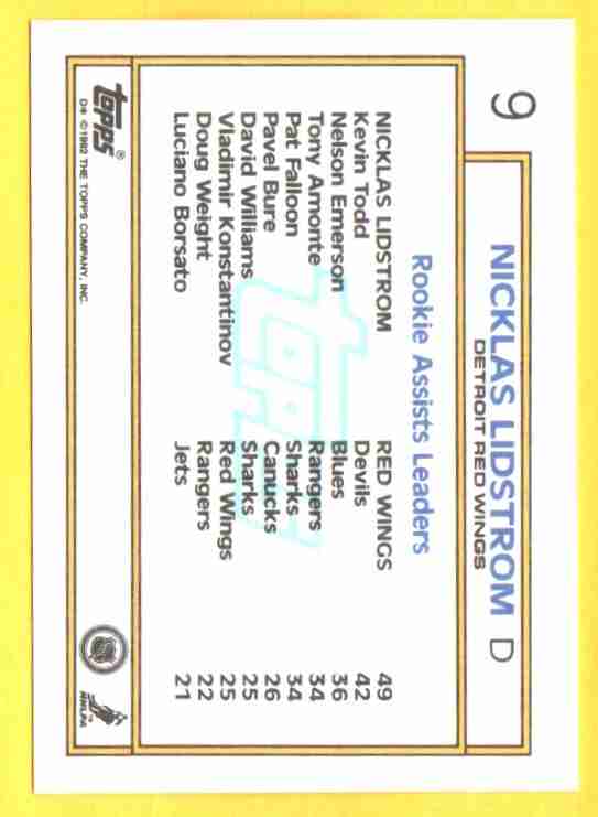Nicklas Lidstrom #9 [Rookie] 1992 Topps