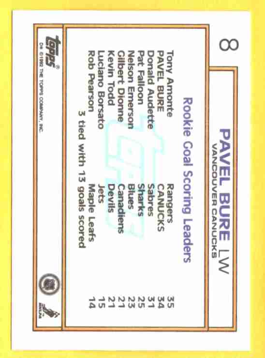 Pavel Bure #8 [Rookie] 1992 Topps