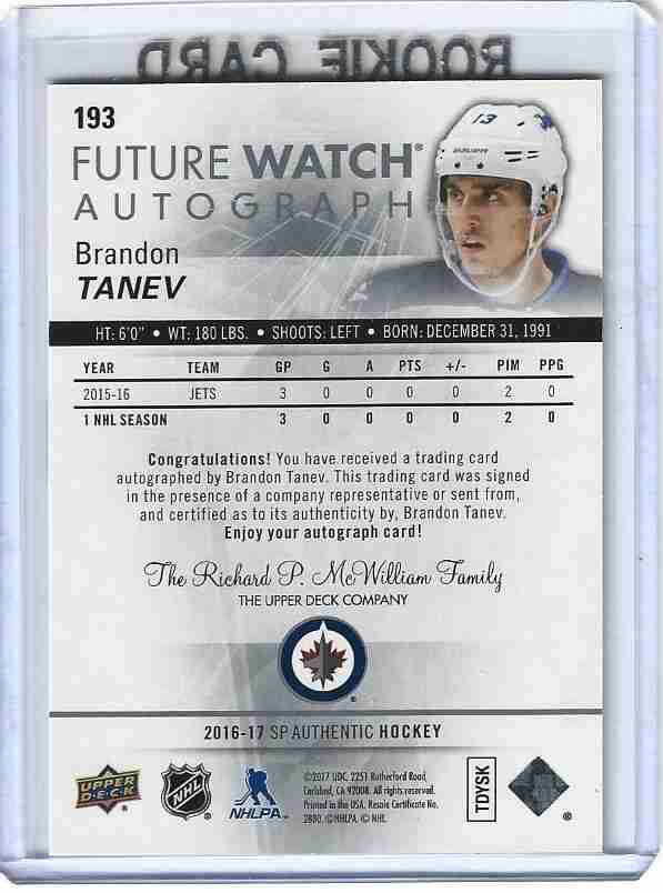 16/17 SP AUTHENTIC FUTURE WATCH BRANDON TANEV AUTO 893/999