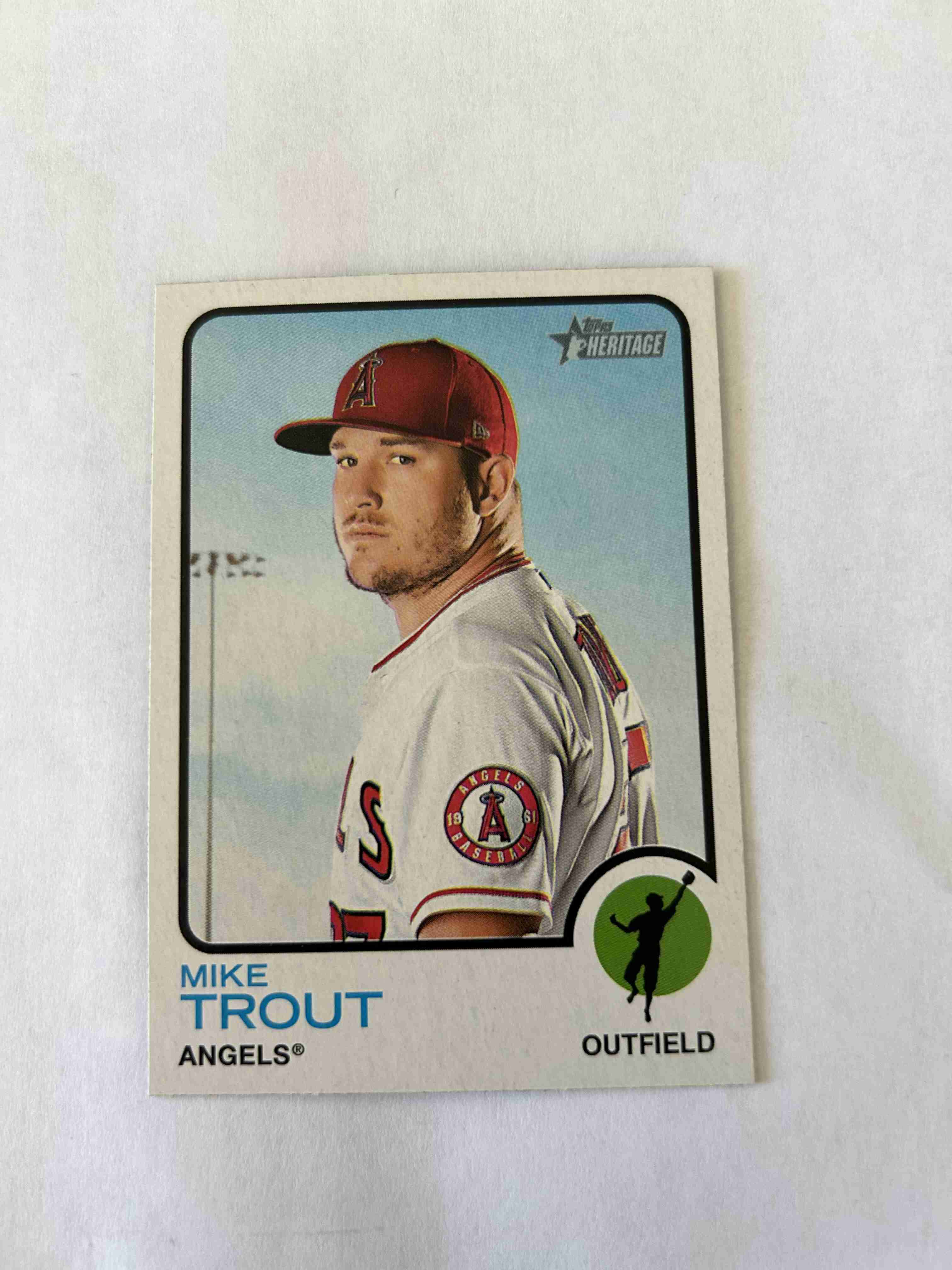 This auction is for 2022 Topps Heritage #100 Mike Trout. It is in nm+ to nm-mt condition approximately.