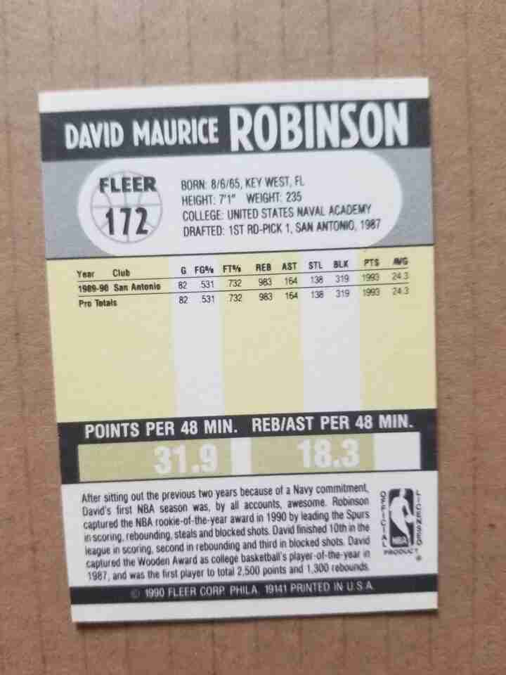 1990-91 Fleer David Robinson RC #172 Spurs