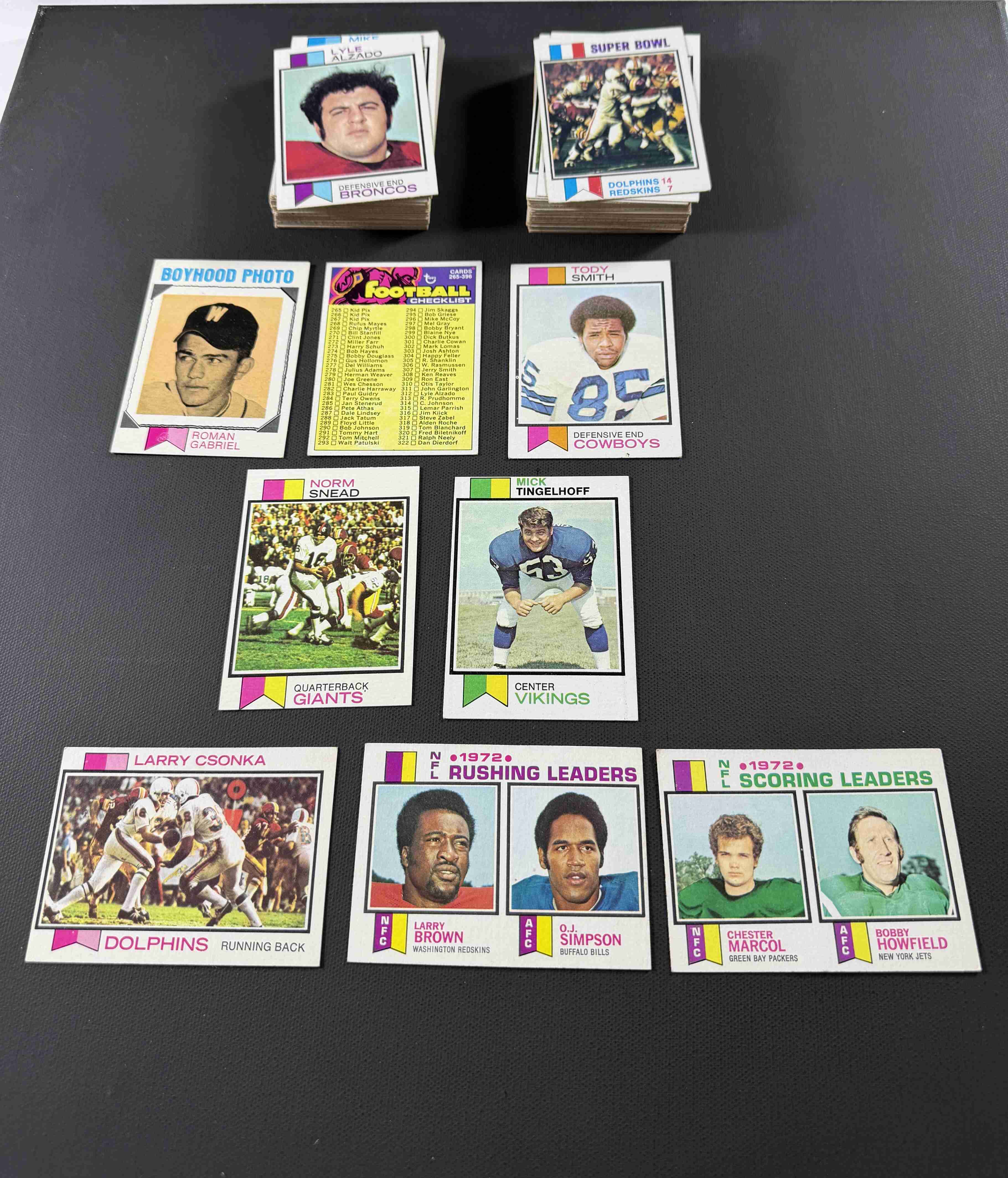 89 different. Includes Larry Csonka plus some other minor stars of the era as well as a Super Bowl card and League Leders with OJ Simpson. Condition ranges from VG to EX with most being VG or VG-EX.
