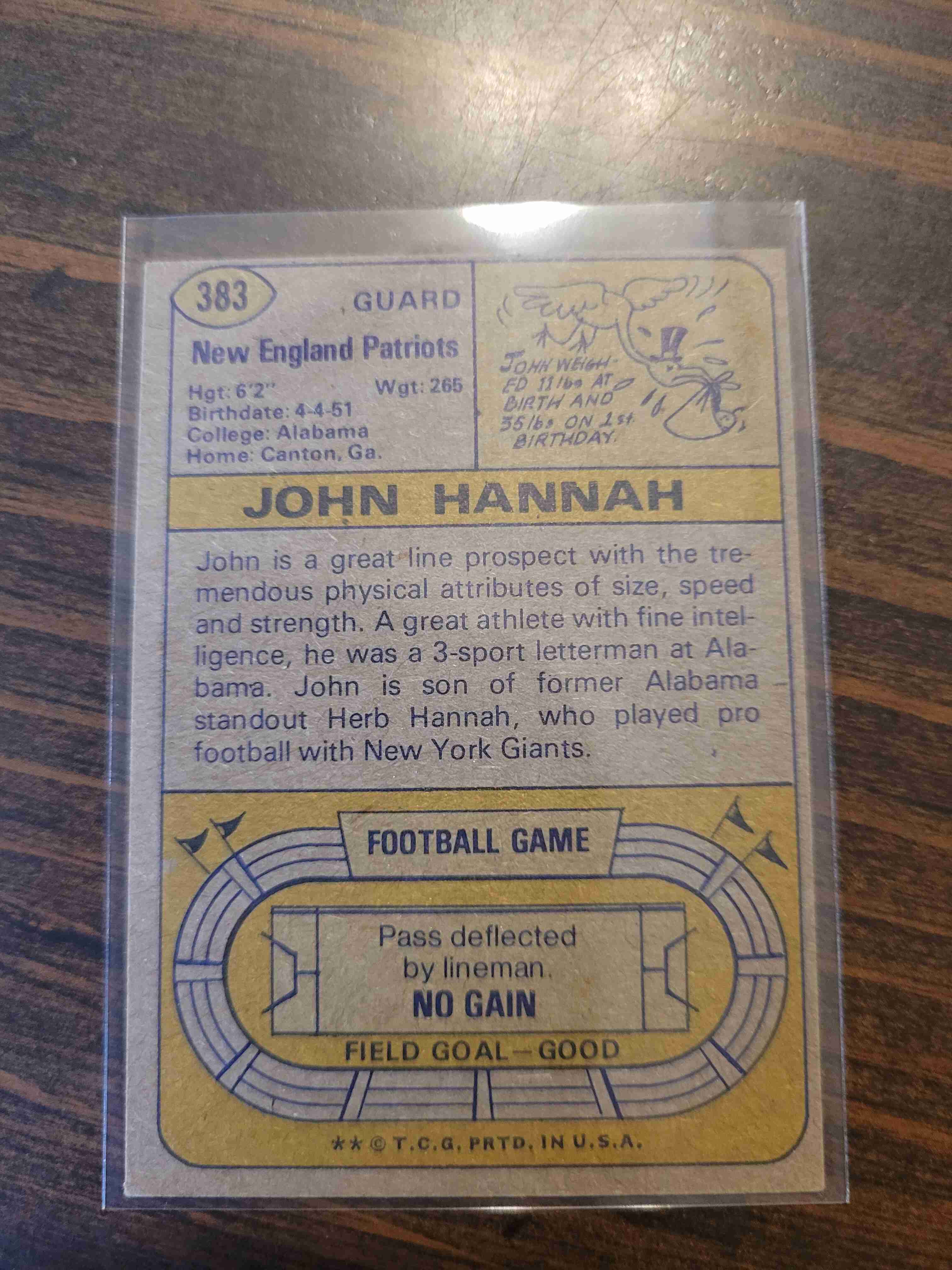 1974 TOPPS JOHN HANNAH #383 ROOKIE