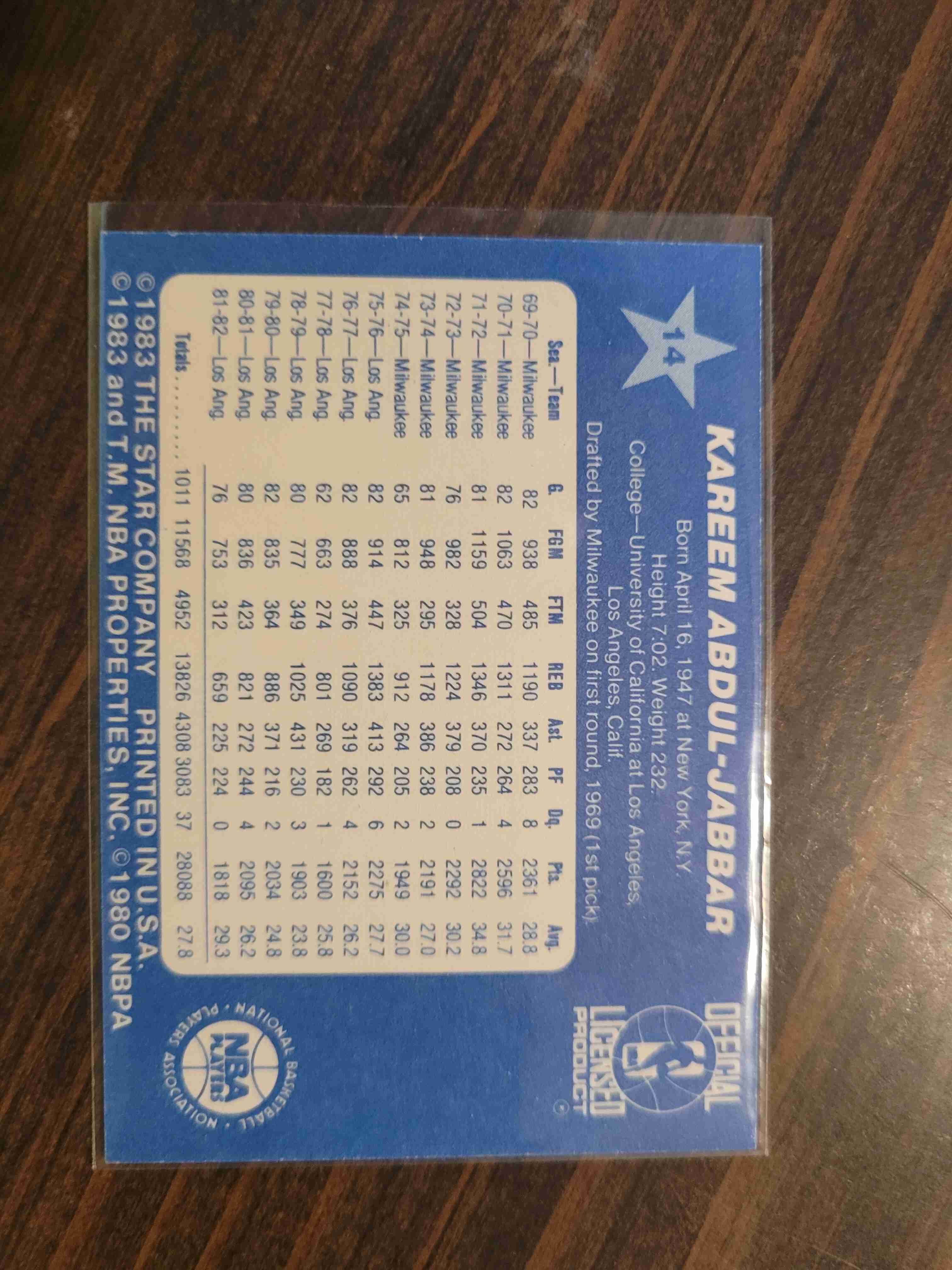 1983 STAR ALL STARS KAREEM ABDUL JABBAR #14