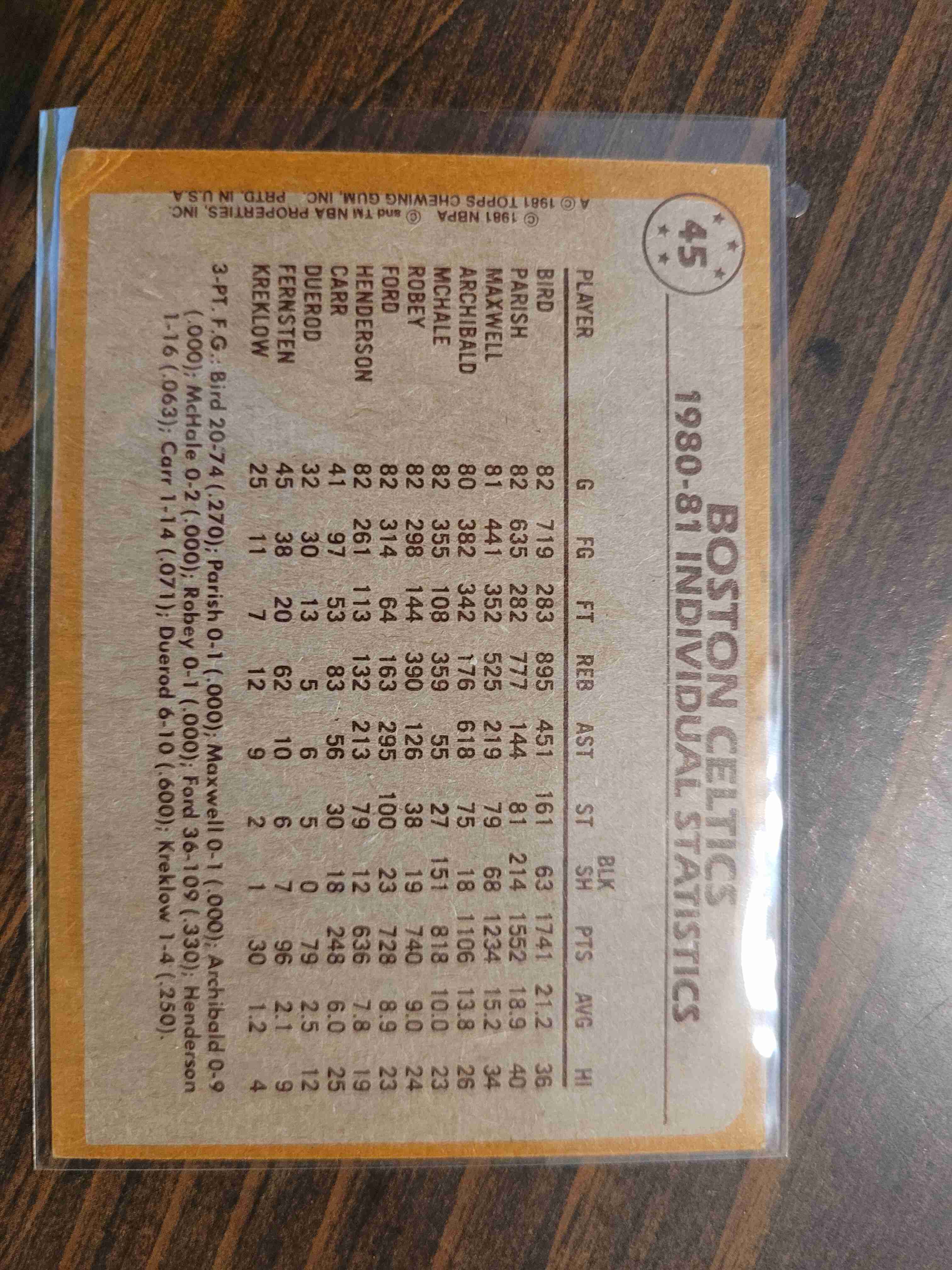 1981-82 TOPPS CELTICS TEAM #45