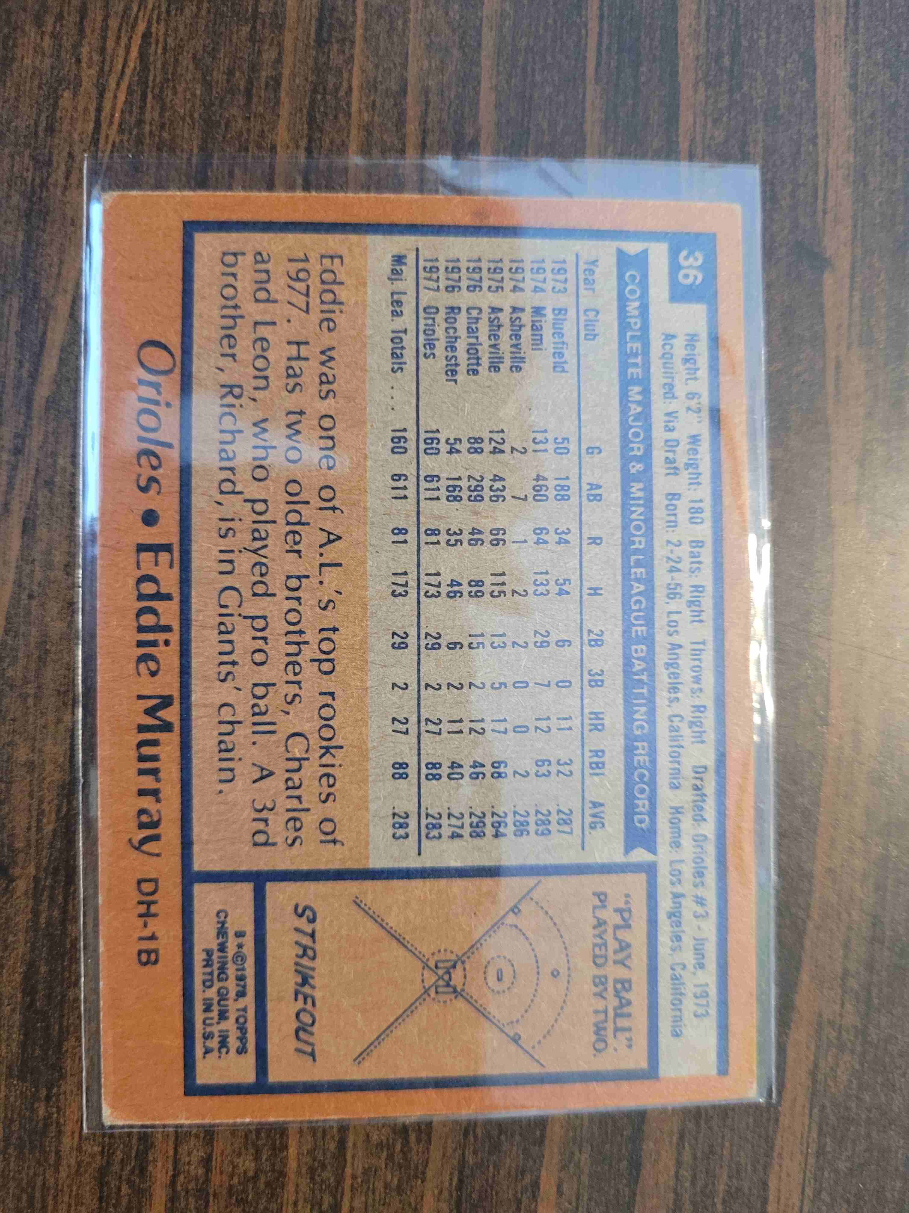 1978 TOPPS EDDIE MURRAY #36 ROOKIE