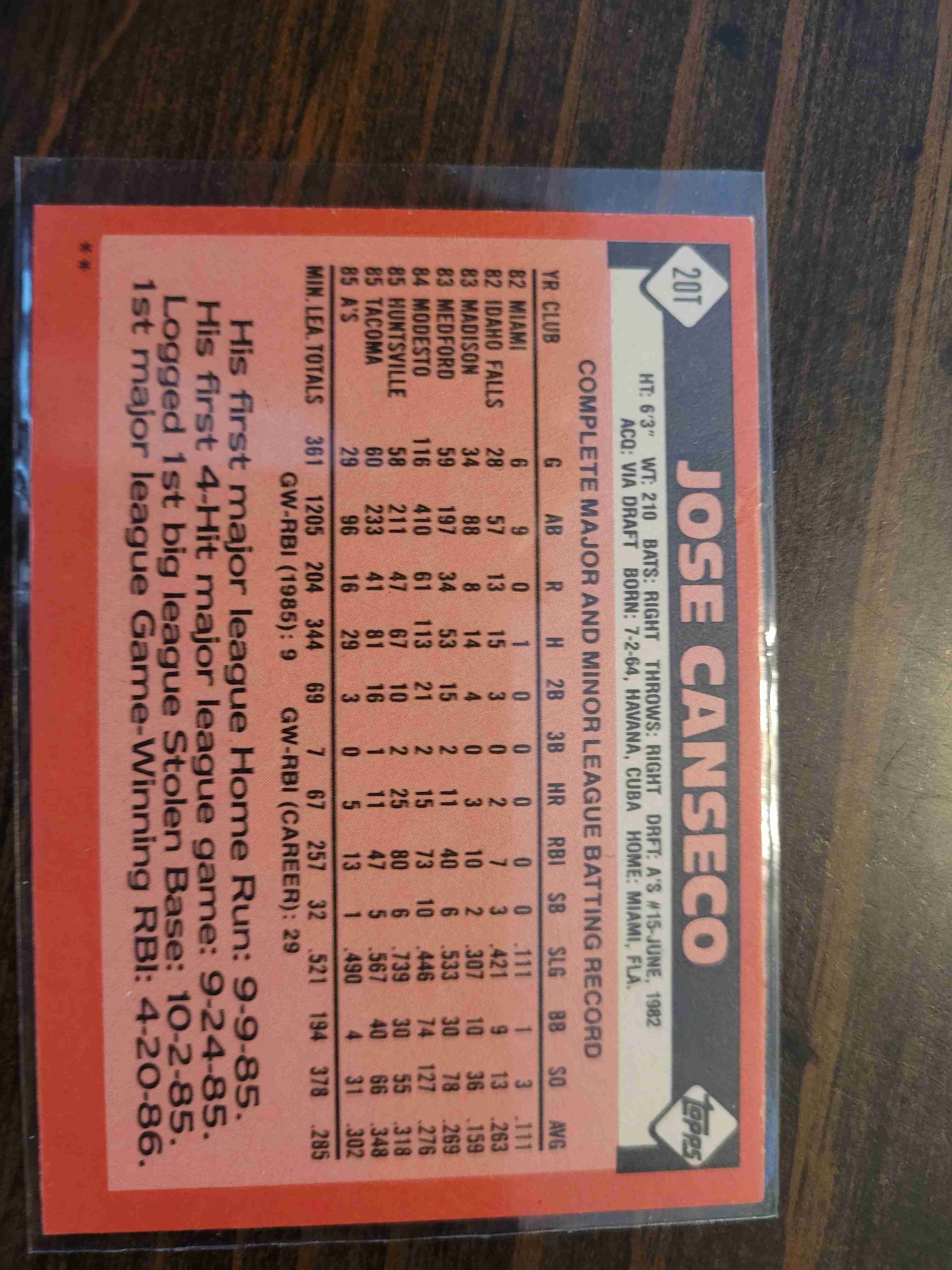 1986 TOPPS TRADED JOSE CANSECO #20T