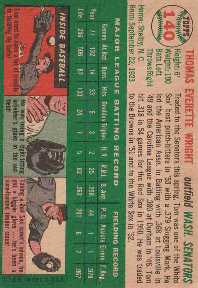 1954 Topps #140 Tom Wright Washington Senators