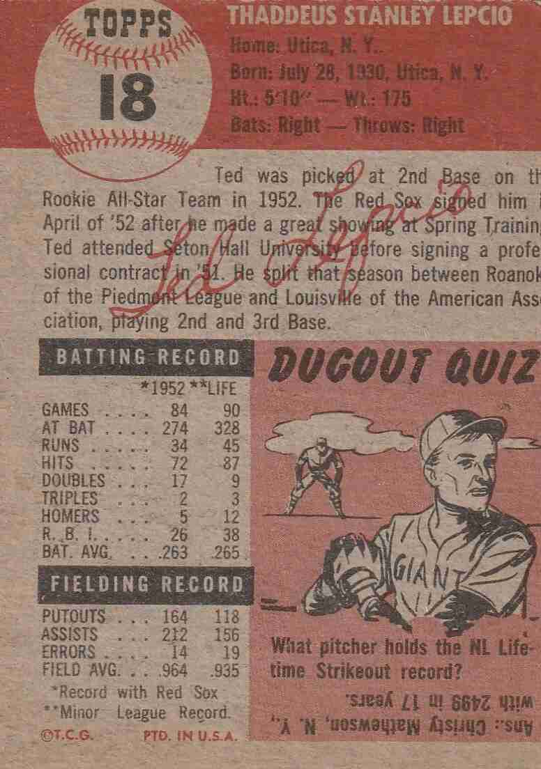 1953 Topps #18 Ted Lepcio Red Sox
