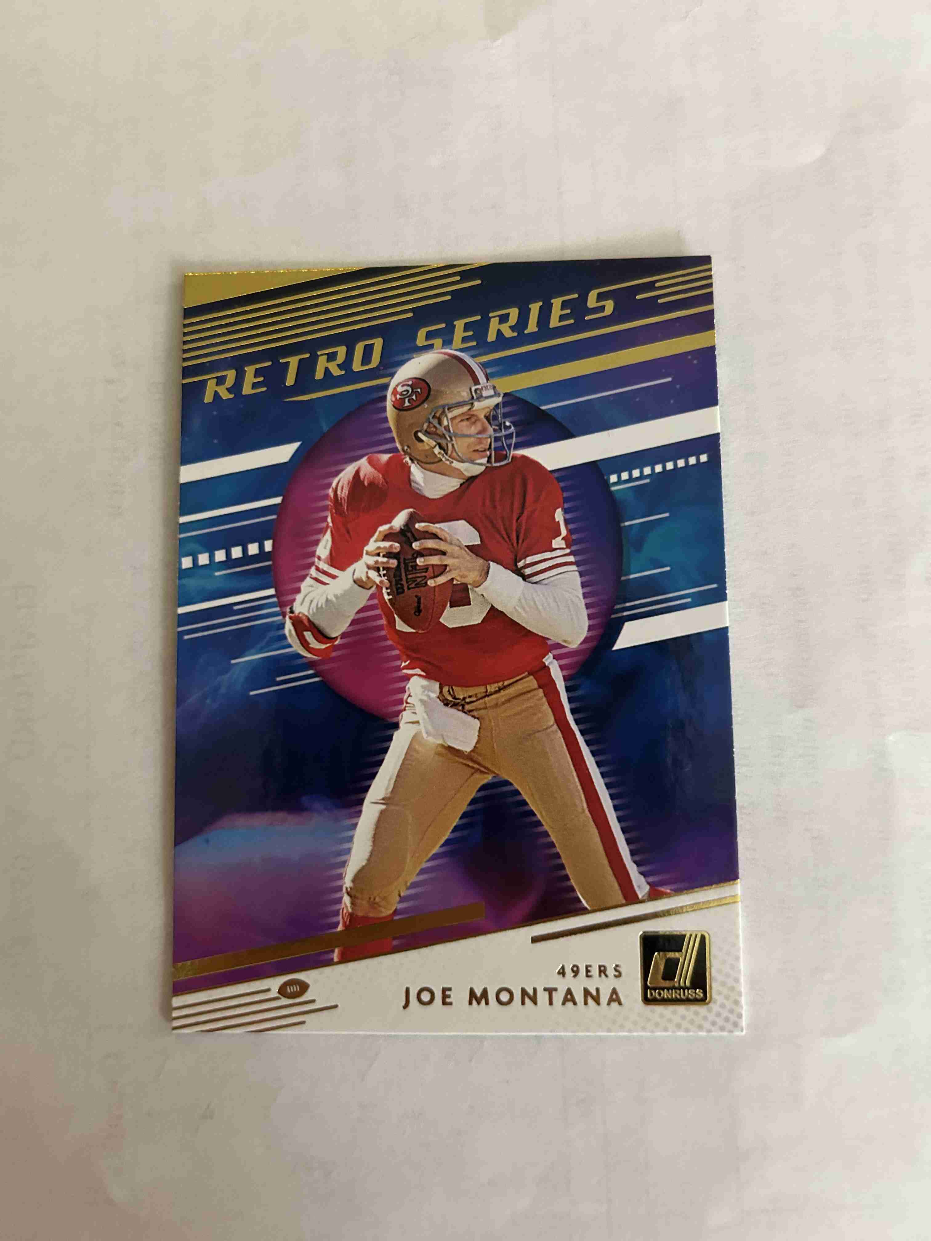 The item up for bid is a 2020 Donruss (Retro Series) Joe Montana #RS-JM.