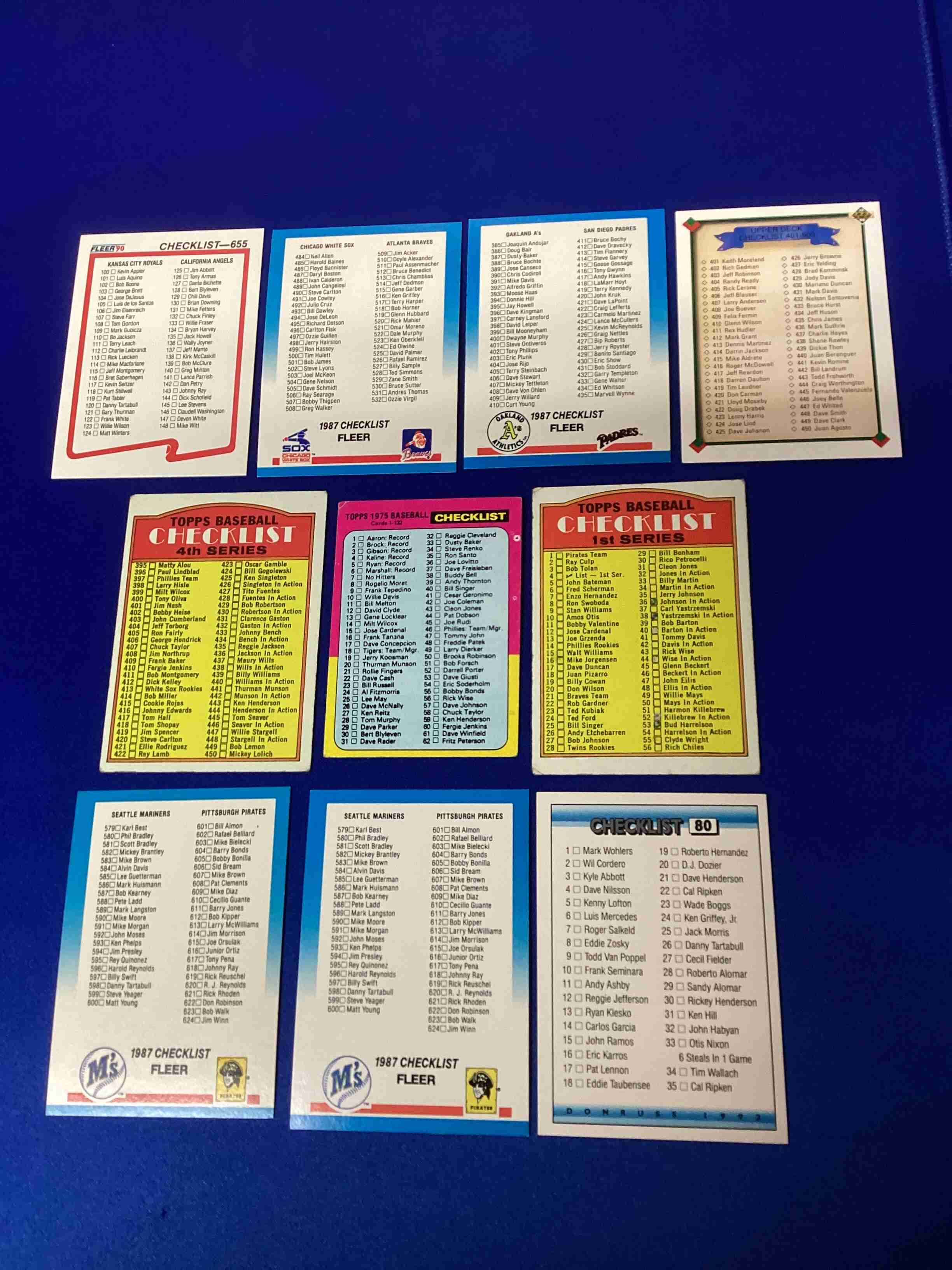 Lot of 10 baseball checklist cards including valuable vintage in great condition. All but 1 are unmarked! Someone needs these! Check out my other auctions for more great deals!