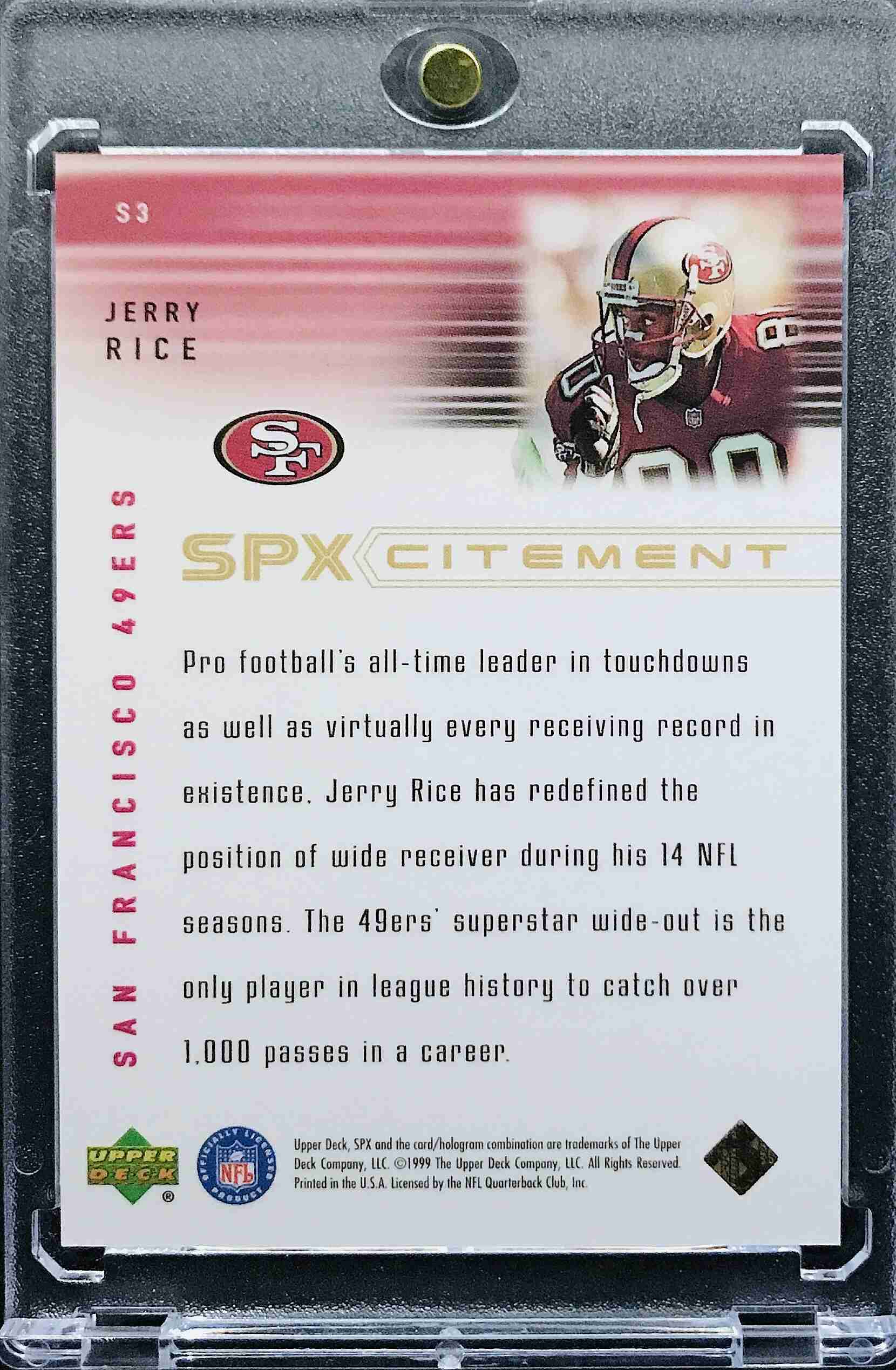 JERRY RICE - 1999 SPx Spxcitement #S3 - SAN FRANCISCO 49ERS