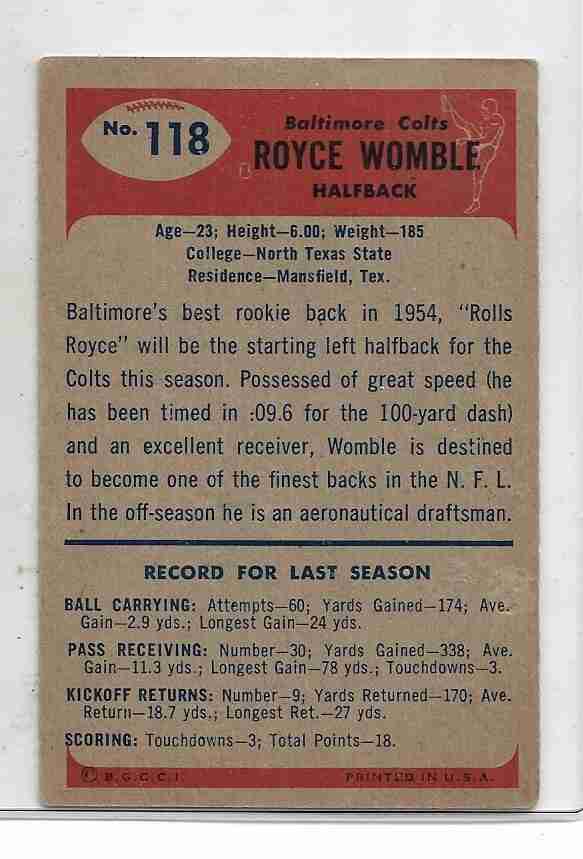 1955 Bowman #118 ~ Royce Womble Baltimore Colts