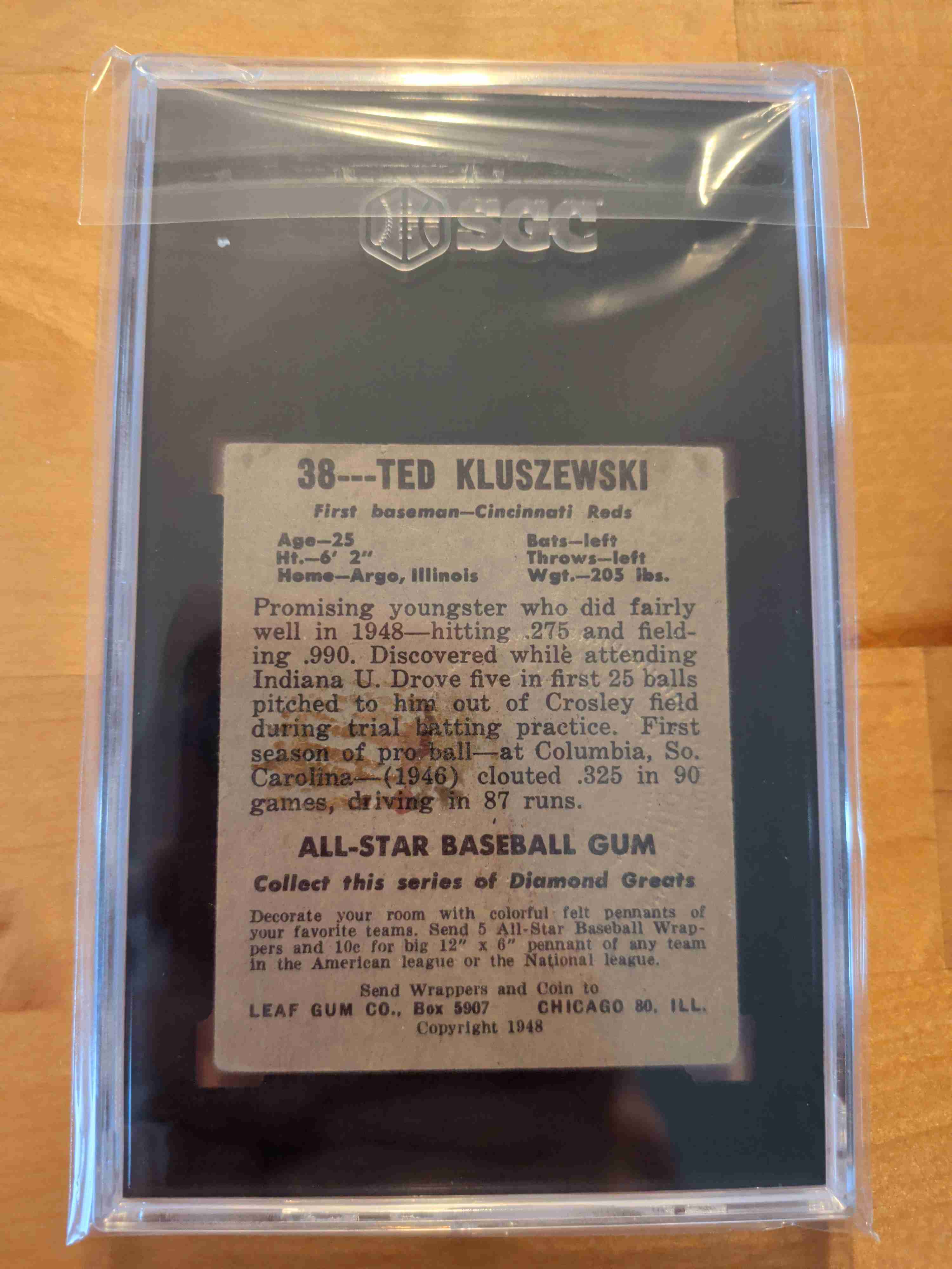 1948 49 Leaf Gum Co #38 Ted Kluszewski SGC 1