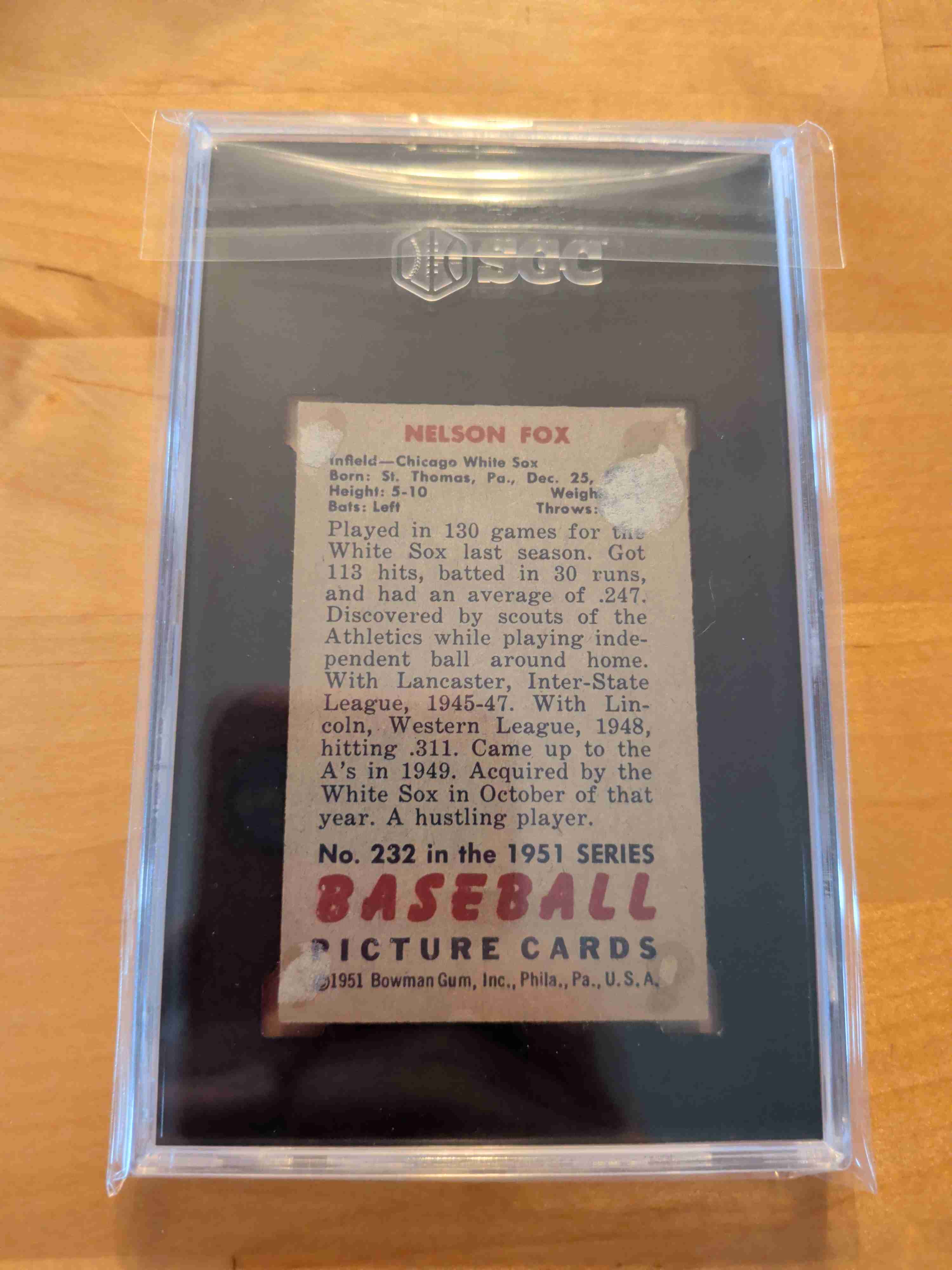 1951 Bowman #232 Nelson Fox SGC 1