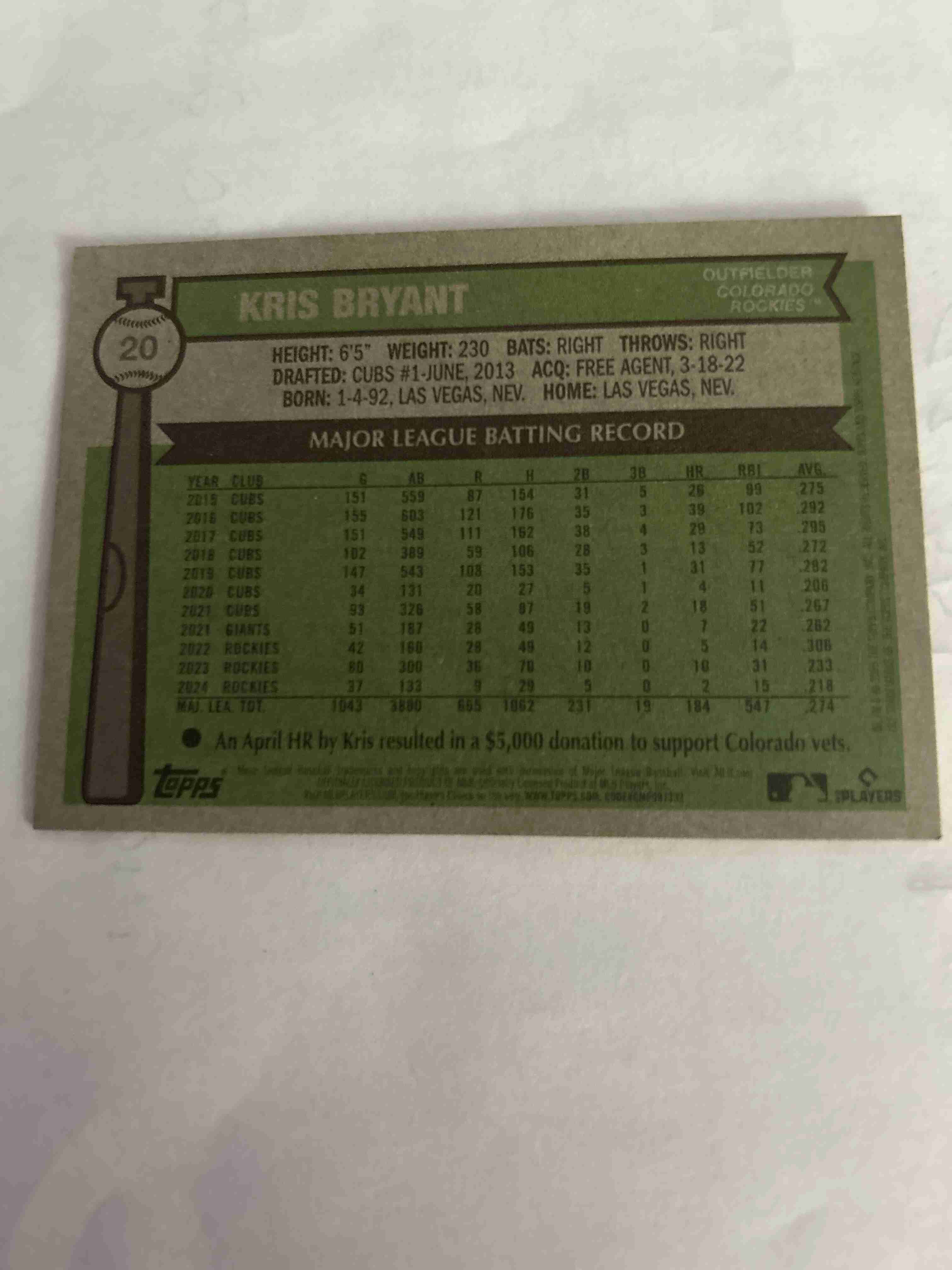 2025 Heritage BB Kris Bryant 20 Color of the year card /76